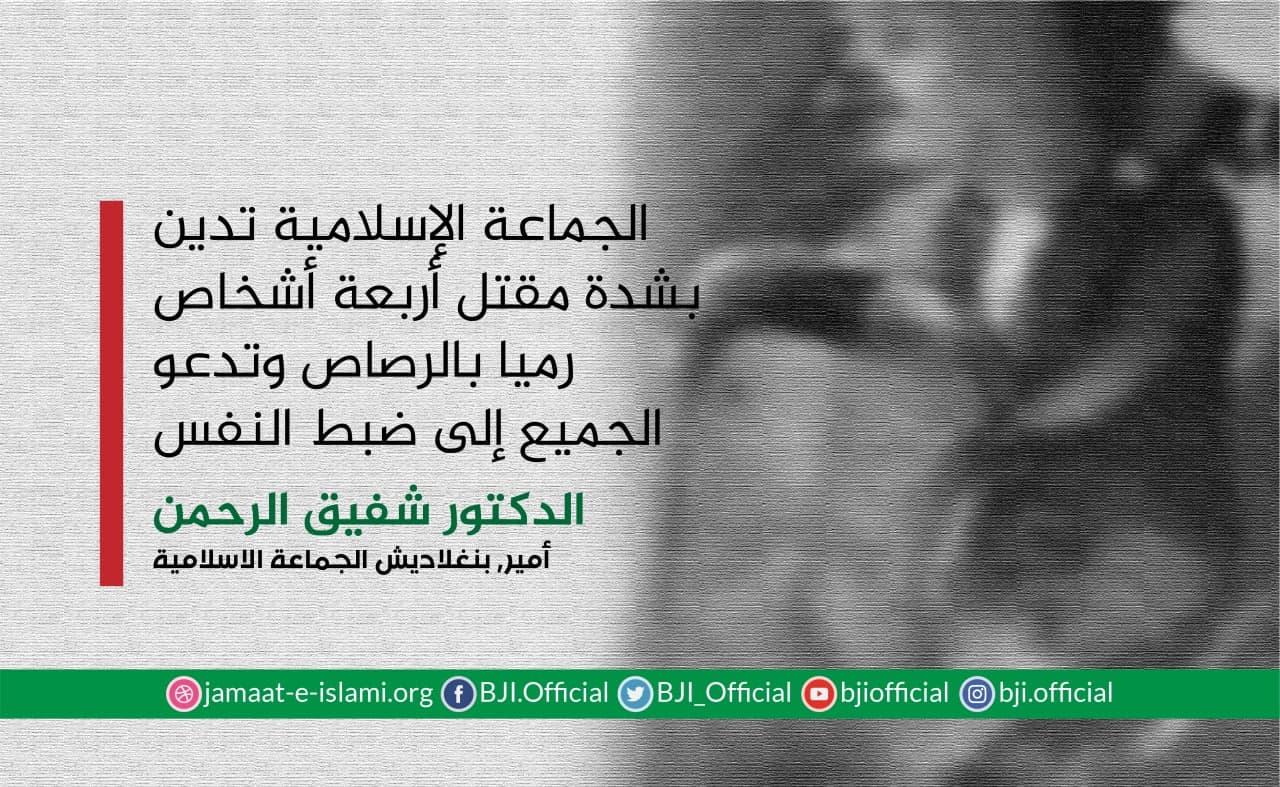 أصدر أمير الجماعة الإسلامية الدكتور شفيق الرحمن اليوم السبت الموافق لـ 30 مايو 2020 بيانا أدان فيه بشدة مقتل 26 مهاجرا بنغلاديشيا في ليبيا على أيدي مهربي البشر كانوا قد خطفوا أثناء عبورهم ليبيا بحثا عن عمل ثم تعرضوا للتعذيب للحصول على فدية،حيث غادر هؤلاء المهاجرون بنغلاديش قبل خمسة أشهر متوجهين إلى إيطاليا وأثناء تواجدهم في ليبيا تعرضوا للاختطاف مرتين وتم احتجازهم كرهائن من قبل مجموعة مسلحة ،حيث قتل الخاطفون 26 بنغلاديشيًا وأصابوا 11 آخرين بجروح،سائلا الله العلي القدير أن يتغمدهم بواسع رحمته،ويسكنهم فسيح جناته،ويلهم أهلهم وذويهم الصبر والسلوان،متمنيا الشفاء العاجل للمصابين ،مطالبا الحكومة بدفع تعويضات لأسر الضحايا