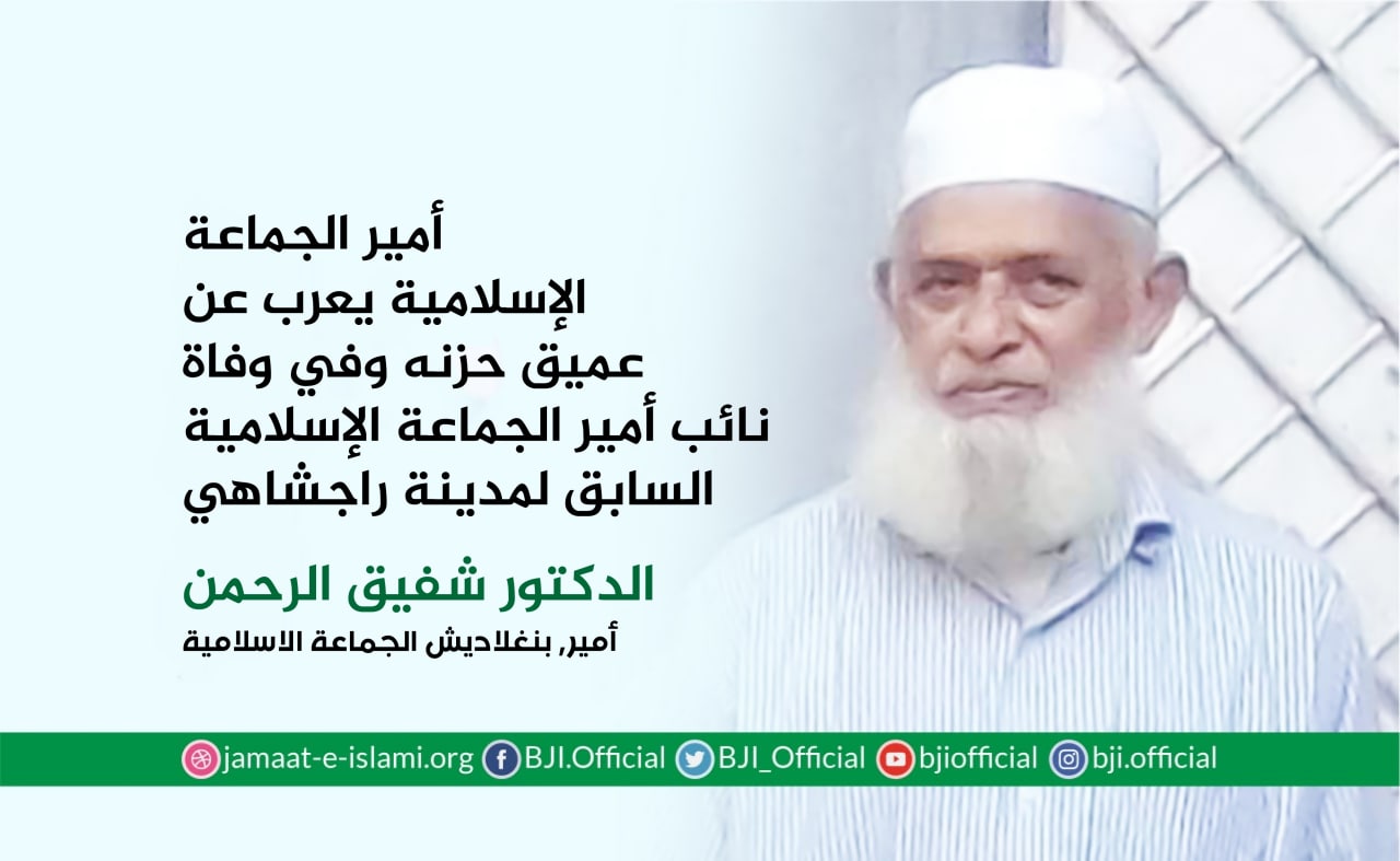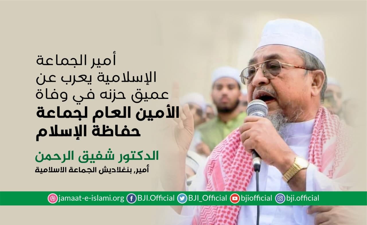 أصدر أمير الجماعة الإسلامية الشيخ الدكتور شفيق الرحمن اليوم الخميس الموافق لـ19 أغسطس 2021 بيانا أعرب فيه عن عميق حزنه ومواساته في وفاة أمير جماعة حفاظة إسلام المنتخب العالم الديني الجليل وأستاذ الأساتذة للآلاف من العلماء العلامة جنيد بابونغري الذي انتقل إلى رحمة الله تعالى ظهر اليوم في إحدى مستشفيات مدينة شيتاغنج (إنا لله وإنا إليه راجعون) ،مضيفا بأن الفقيد لعب دورا كبيرا ومحوريا في نشر تعاليم الإسلام وقيمه السمحة وعمل على ترسيخه في بنغلاديش،وقدم مساهمات كبيرة في إنشاء العديد من المؤسسات الدينية مثل المساجد والمدارس الدينية في جميع أنحاء البلاد،وقد تتلمذ على يديه آلاف العلماء في هذا ...