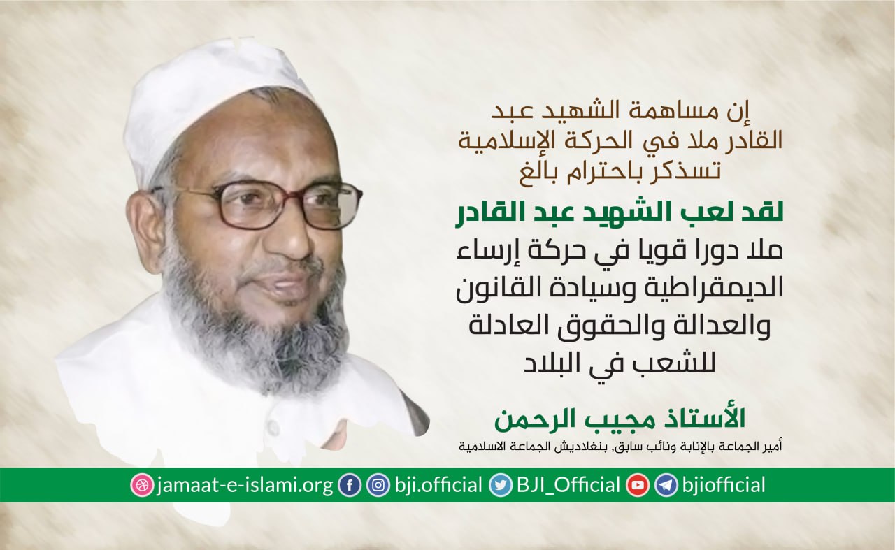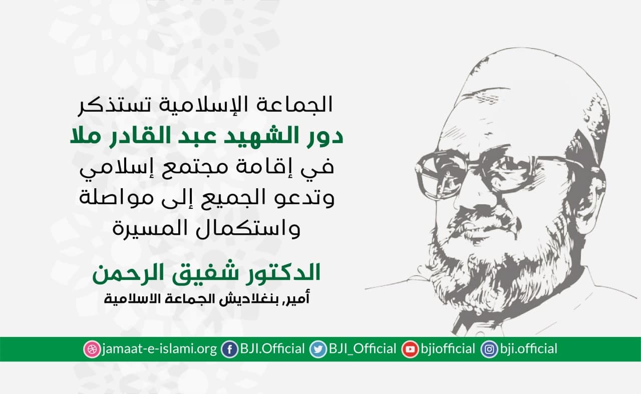 أصدر أمير الجماعة الإسلامية الشيخ الدكتور شفيق الرحمن اليوم الأحد الموافق لـ9 مايو 2021 بيانا تذكر فيه مناقب ومآثر أمير الجماعة الإسلامية السابق والمفكر والكاتب الإسلامي والعالم الديني الجليل ووزيري الصناعة والزراعة السابق والنائب البرلماني السابق الشهيد مطيع الرحمن نظامي الذي أعدمته الحكومة القمعية في 11 مايو 2016بعد أن أدانته في قضية ملفقة ومفبركة لا أساس لها من الصحة من أجل تحقيق الانتقام السياسي،مضيفا بأن الشهيد مطيع الرحمن نظامي معروف لدى الشعب البنغلاديشي ،فهو عالم دين ومفكر إسلامي ومن الأسامي التي ستكون خالدة في ذاكرة الشعب البنغلاديشي،عرف عنه صدقه وكرمه وتواضعه وشفافيته وهو ما أكسبه شعبية واسعة ومكانة ...