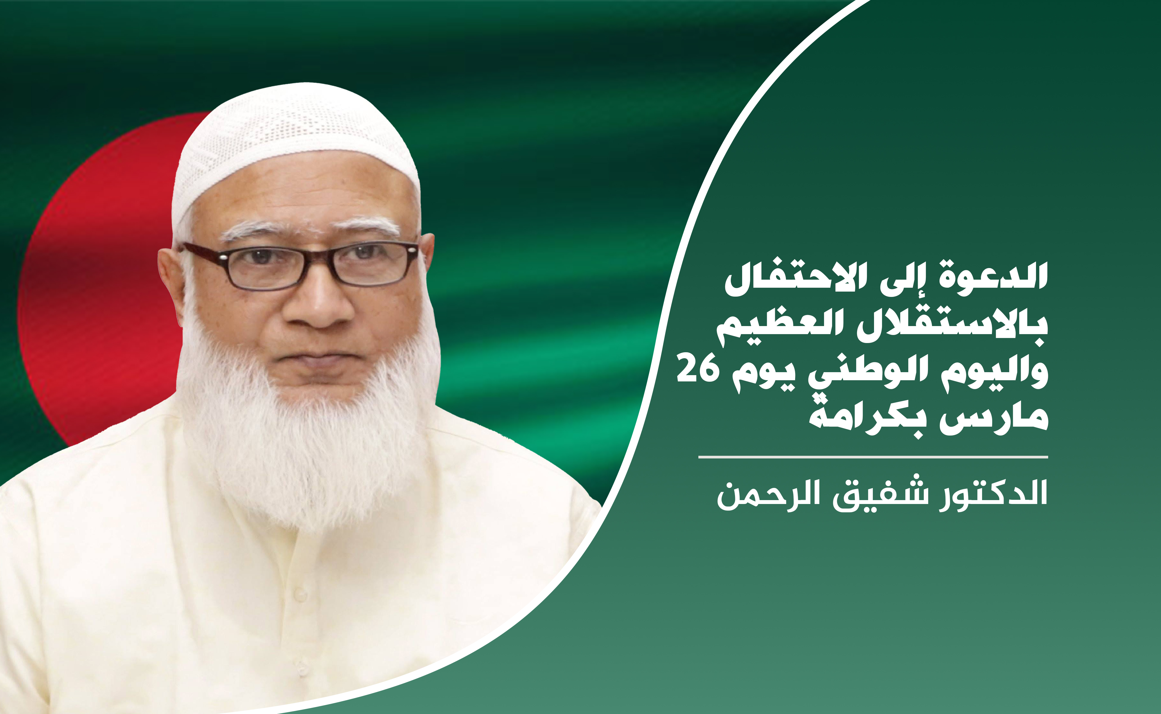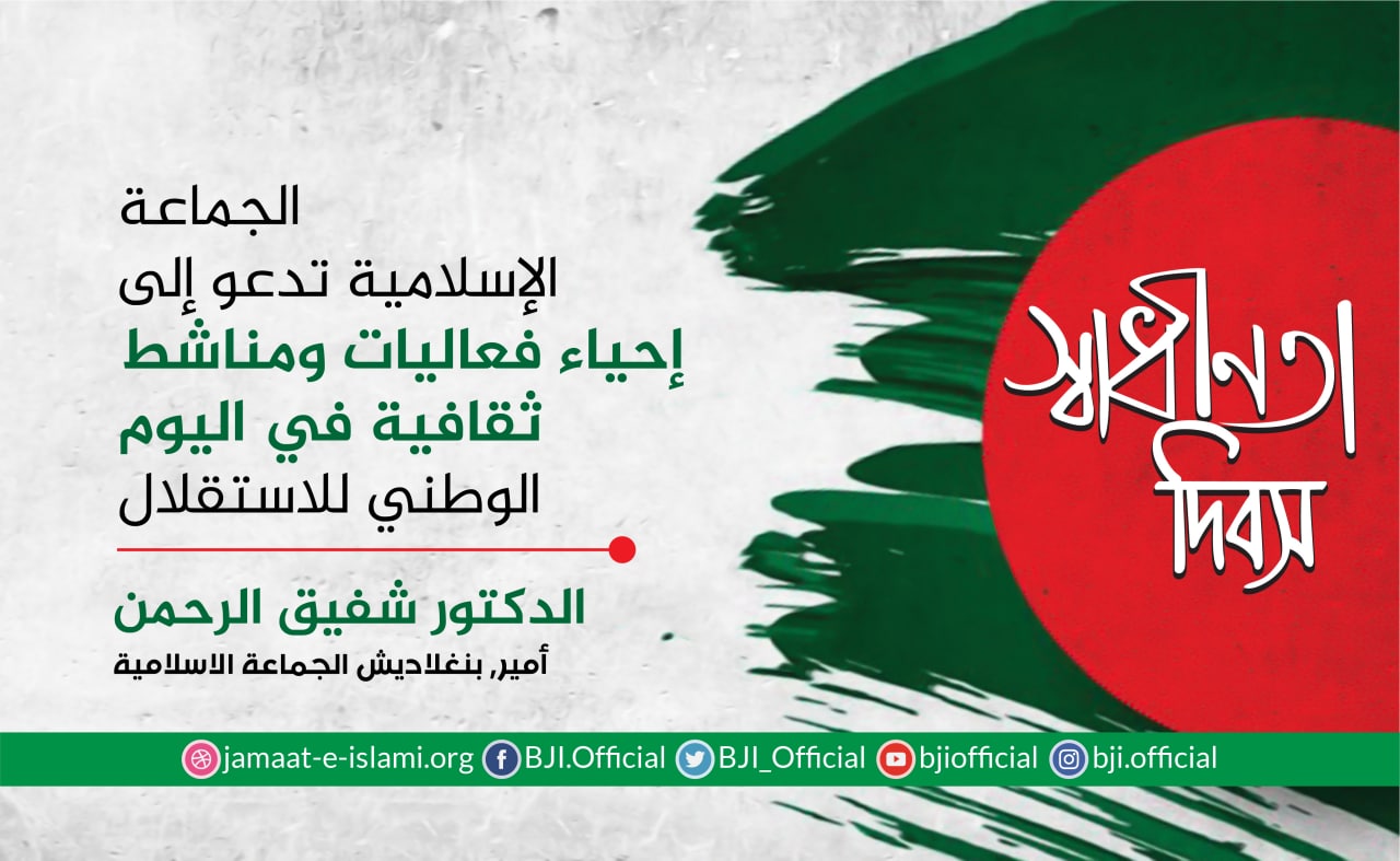 وأضاف أمير الجماعة الإسلامية في بيانه إن يوم 26 مارس هو يوم الاستقلال الوطني،ولهذا اليوم أهمية كبيرة و هائلة في حياتنا الوطنية، حيث أننا حصلنا على استقلالنا بدماء الأبطال البواسل الذين ضحو بالغالي والنفيس من أجل إقامة دولة مستقلة على الخارطة العالمية تكون كدولة مستقلة ذات سيادة خالية من الفقر والجوع والبطالة وتنعم أجيالها القادمة بالحرية ،وقد كان الحلم الذي يراود الجميع هو تمتع المواطنين بالحرية ...