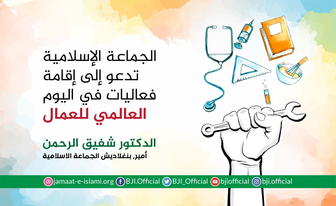 أصدر أمير الجماعة الإسلامية الشيخ الدكتور شفيق الرحمن اليوم الخميس الموافق لــ 29 إبريل 2021 بيانا دعا فيه المواطنين إلى إقامة فعاليات في اليوم العالمي للعمال الذي يصادف الأول من شهر مايو من كل عام .