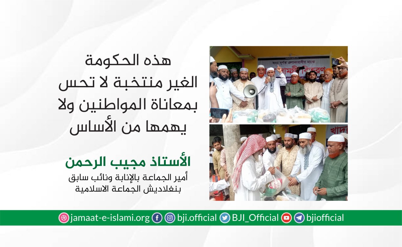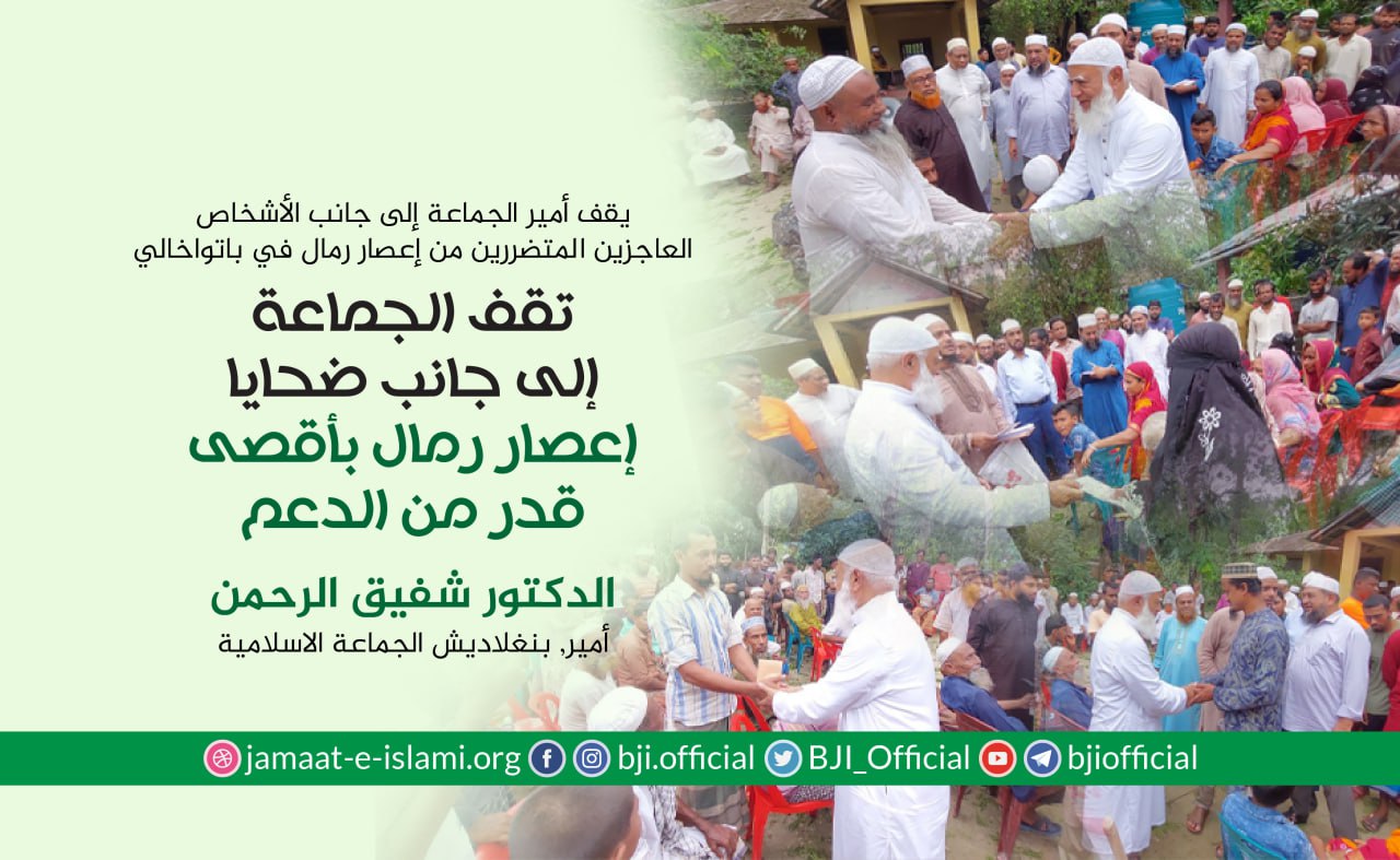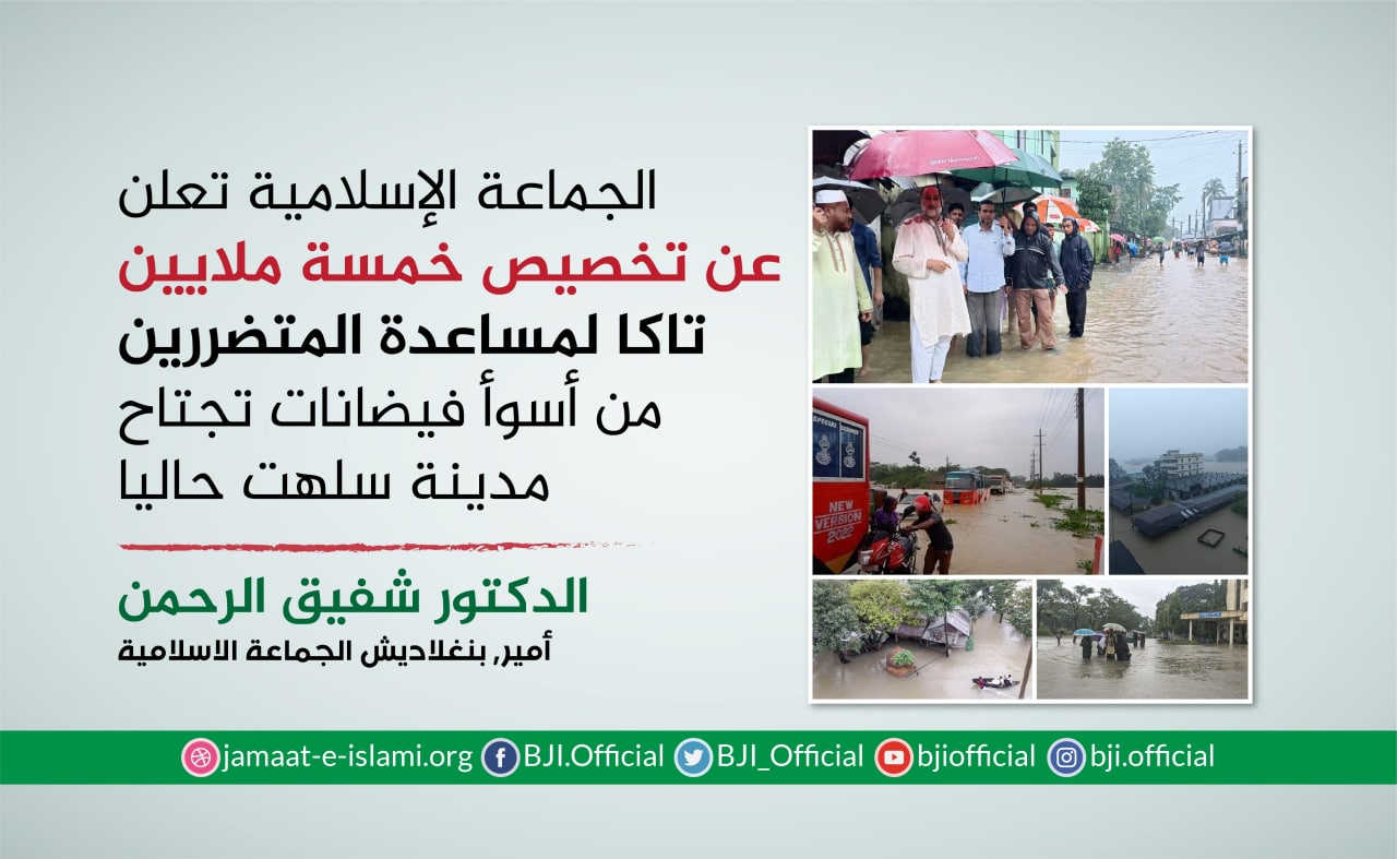 في خضم المأساة التي ألمت بالبلاد جراء الأمطار الغزيرة والفيضانات العارمة، وجه أمير الجماعة الإسلامية في بنغلاديش، الدكتور شفيق الرحمن، في العاشر من يوليو الجاري، نداء مؤثرا إلى أبناء الوطن كافة، أفرادا ومؤسسات، للوقوف صفا واحدا إلى جانب المنكوبين الذين يرزحون تحت وطأة الكارثة