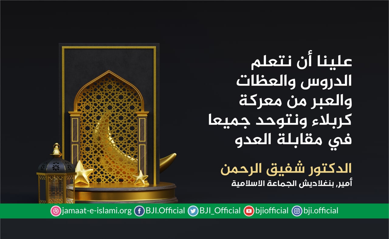 أصدر أمير الجماعة الإسلامية الشيخ الدكتور شفيق الرحمن اليوم الخميس الموافق لـ20 أغسطس 2021 بيانا قال فيهإن يوم العاشر من شهر الله المحرم لم يكن يوما تاريخيا للمسلمين فقط بل لجميع الأمم السابقةأيضا،ففي هذا اليوم ،خلق الله سبحانه وتعالى الكون ،وفي هذا اليوم أنقذ الله سبحانه وتعالى 10من الانبياء والرسل من مصائب،وهو اليوم الذي كانت تُكسى فيه الكعبة قبل الإسلام ثم صارت تُكسى في يوم النحر. وهو اليوم الذي تاب الله فيه على آدم، وهو اليوم الذي نجى الله فيه نوحا وأنزله من السفينة،وفيه أنقذ الله نبيه إبراهيم من نمرود،وفيه رد الله يوسف إلى يعقوب،وهو اليوم الذي أغرق ...