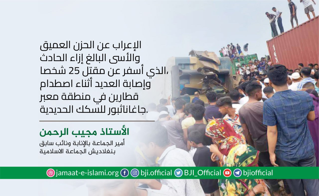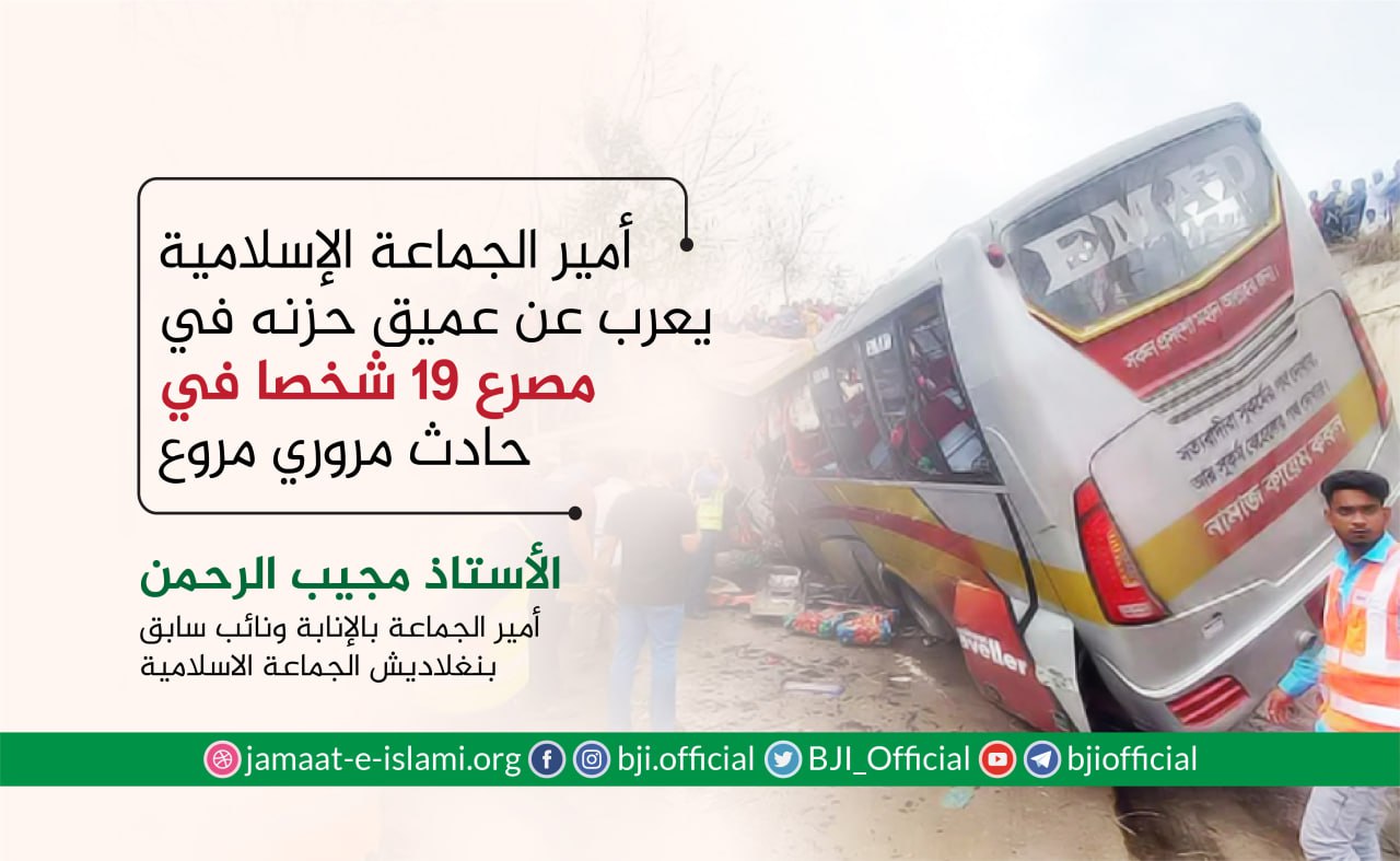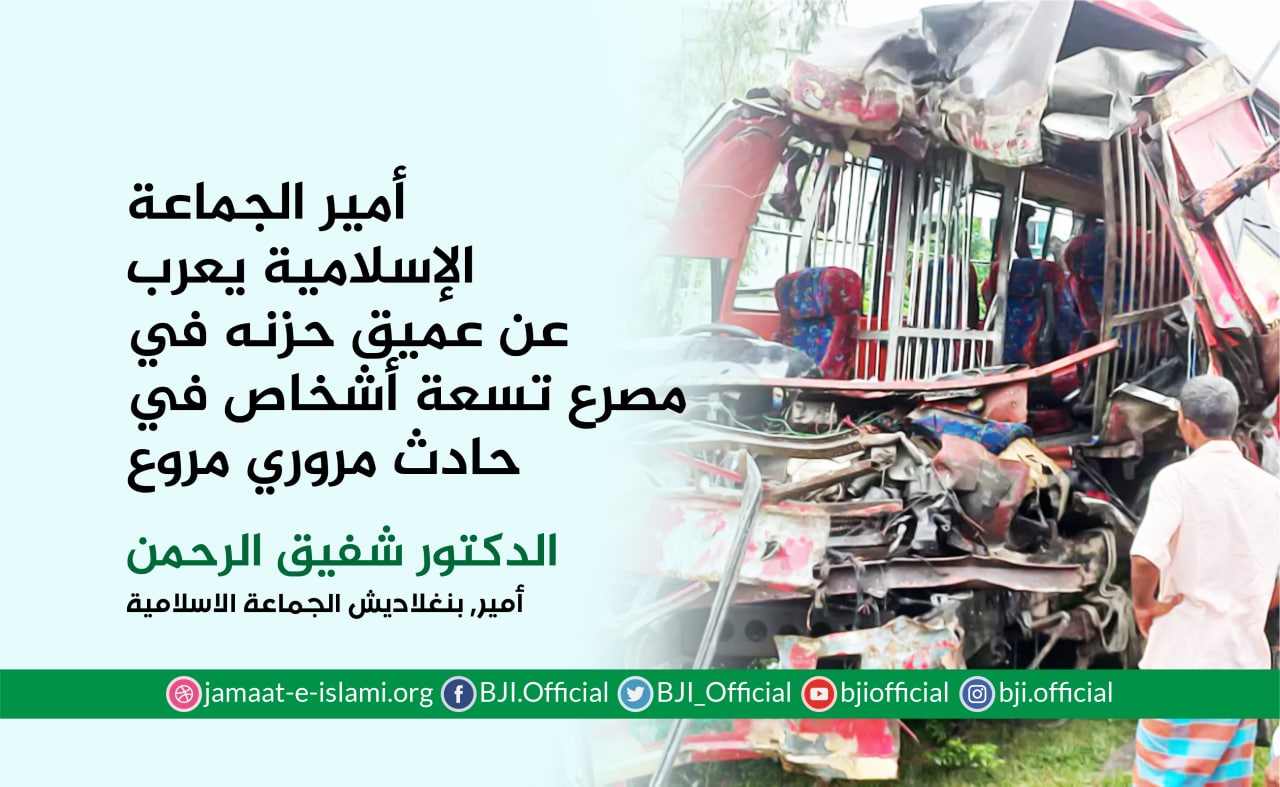 أصدر أمير الجماعة الإسلامية الدكتور شفيق الرحمن في 19 نوفمبر 2020 بيانا أعرب فيه عن عميق حزنه ومواساته لأسر ضحايا الحادث المروري المروع الذي وقع في مدينة"شاباي نواب غنج" صباح الخميس الماضي والذي أسفر عن مقتل تسعة أشخاص وجرح آخرين وذلك على إثر انقلاب عربة محلية الصنع كانت تحمل أخياش الرز وسقوطها في حفرة عميقة بجانب الطريق ،مقدما تعازيه الحارة لأسر الضحايا ،سائلا الله العلي القدير أن يتغمدهم بواسع رحمته،ويسكنهم فسيح جناته،ويلهم أهلهم وذويهم الصبر والسلوان ،متمنيا الشفاء العاجل للمصابين ،مطالبا الحكومة بدفع تعويضات مناسبة لأسر الضحايا وتقديم العلاج الطبي اللازم للمصابين