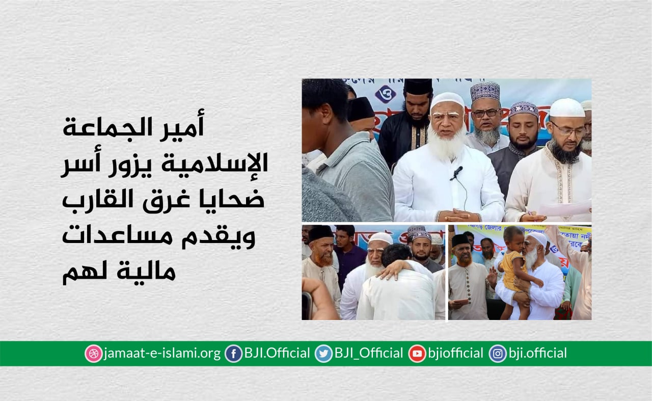 أعرب أمير الجماعة الإسلامية الشيخ الدكتور شفيق الرحمن عن خالص تعازيه ومواساته لأسر الضحايا الذين لقو مصرعهم في حادثة انقلاب الزورق المائي الأسبوع الماضي بينما كانوا في نزهة في إحدى المسطحات المائية في مدينة "نتروكونا" ،مبديا تعاطفه العميق معهم ووقوفهم إلى جانبهم في هذه المحنة الأليمة.
