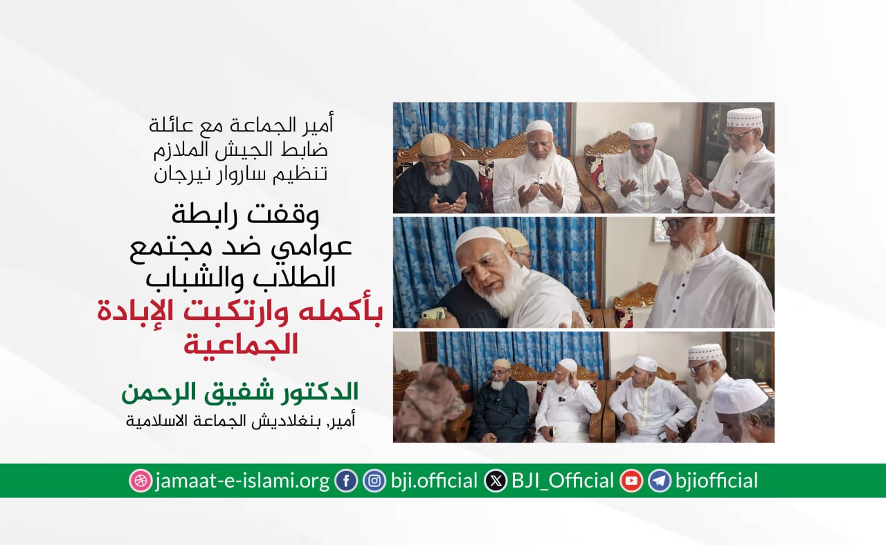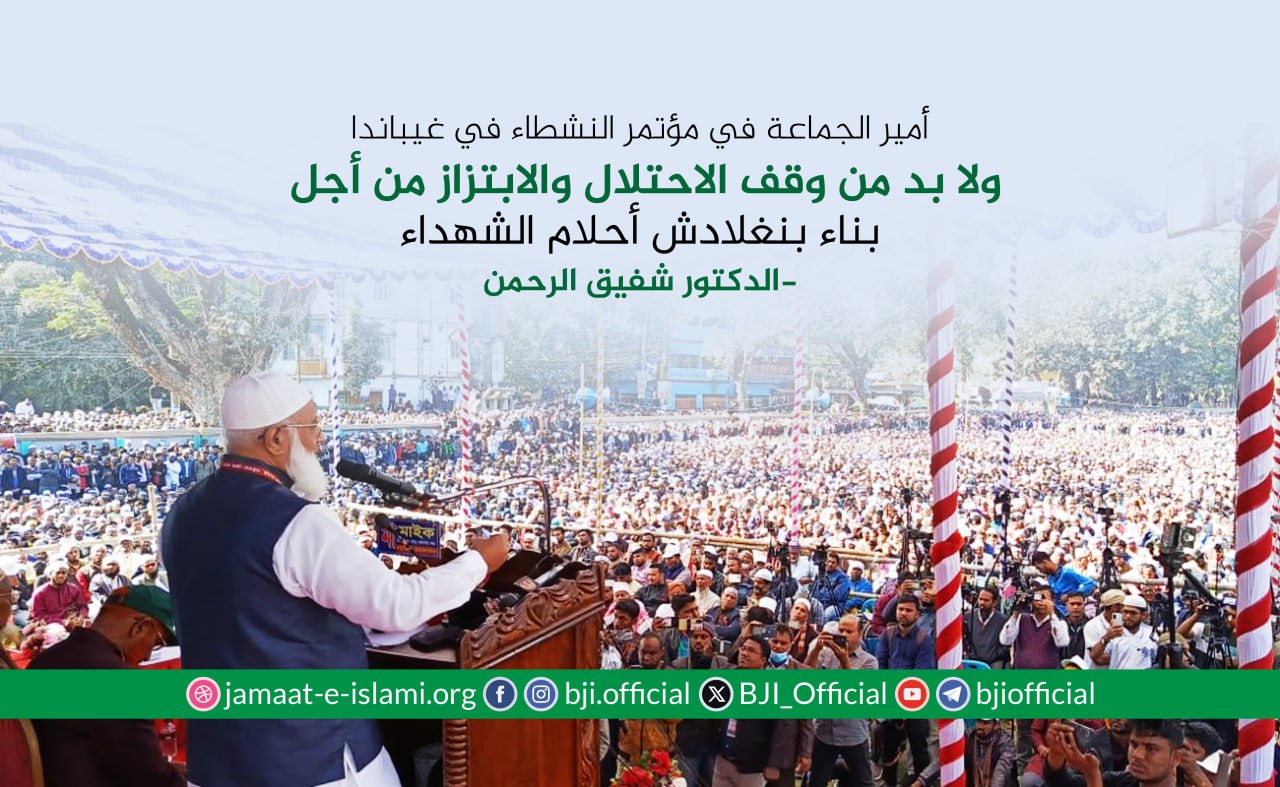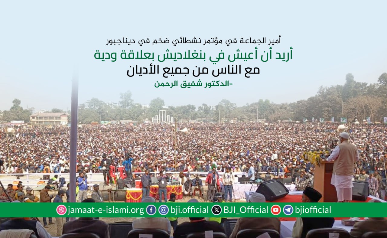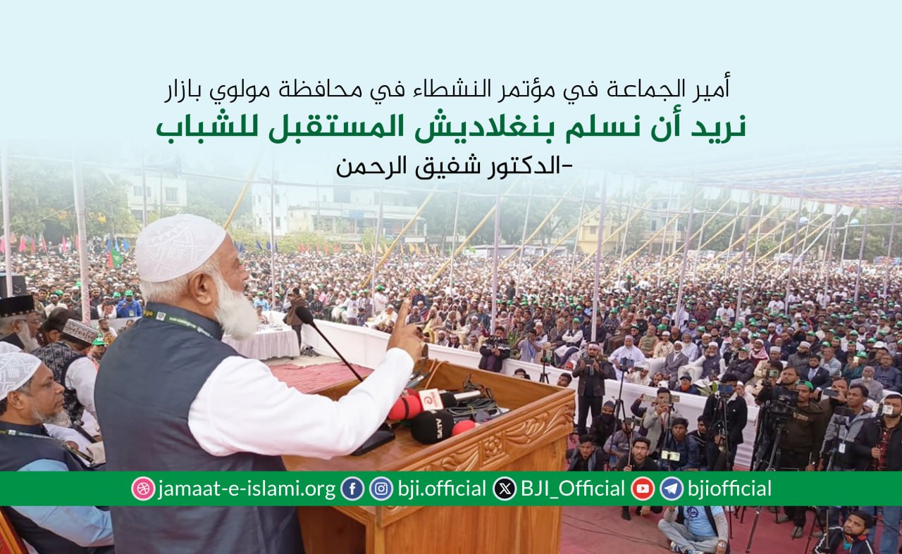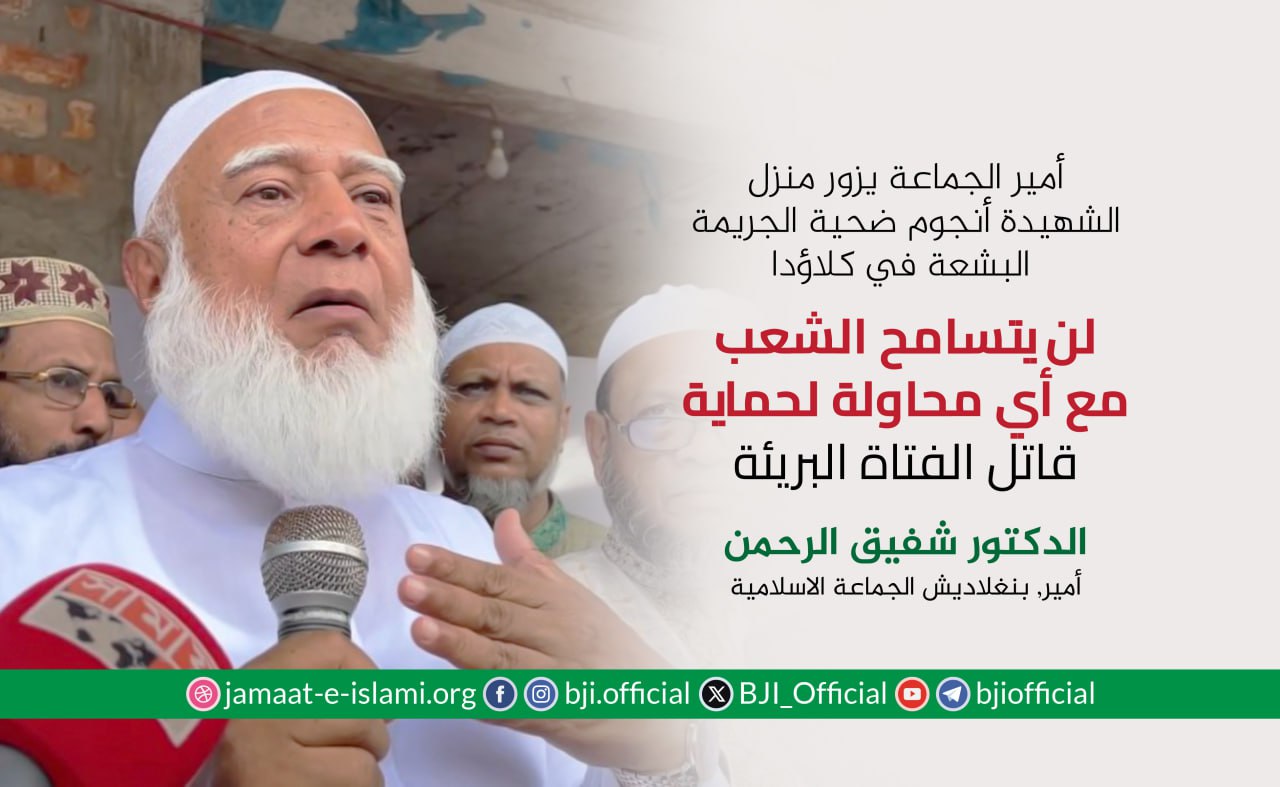 أكد أمير الجماعة الإسلامية في بنغلاديش الدكتور شفيق الرحمن أن الجماعة ماضية في نضالها وجهادها الدؤوب لإقامة مجتمع يقوم على دعائم العدل والإنصاف، مشددا على أن مسيرة الكفاح ستظل متواصلة حتى تشرق شمس النصر الموعود وتتحقق الغاية المنشودة