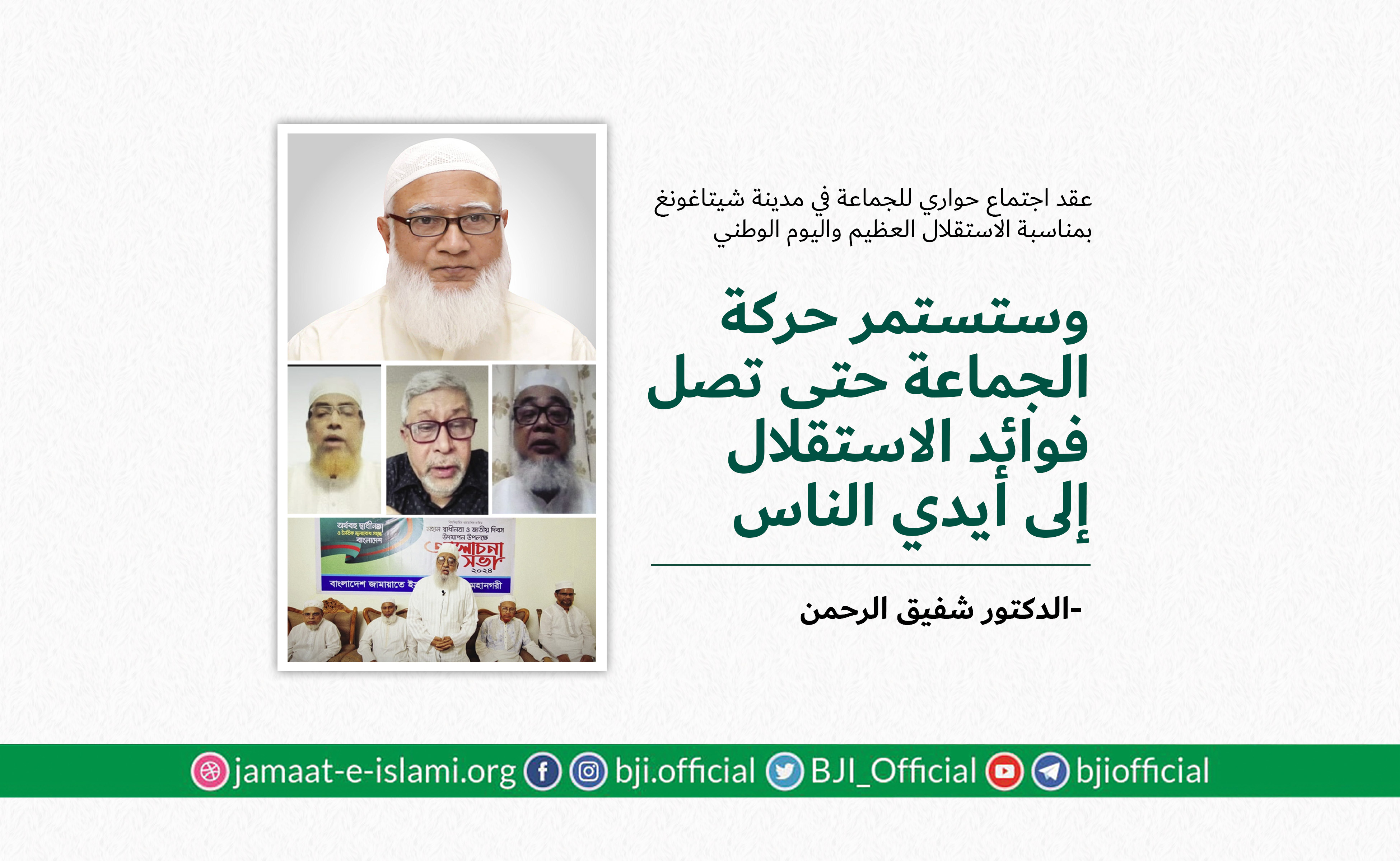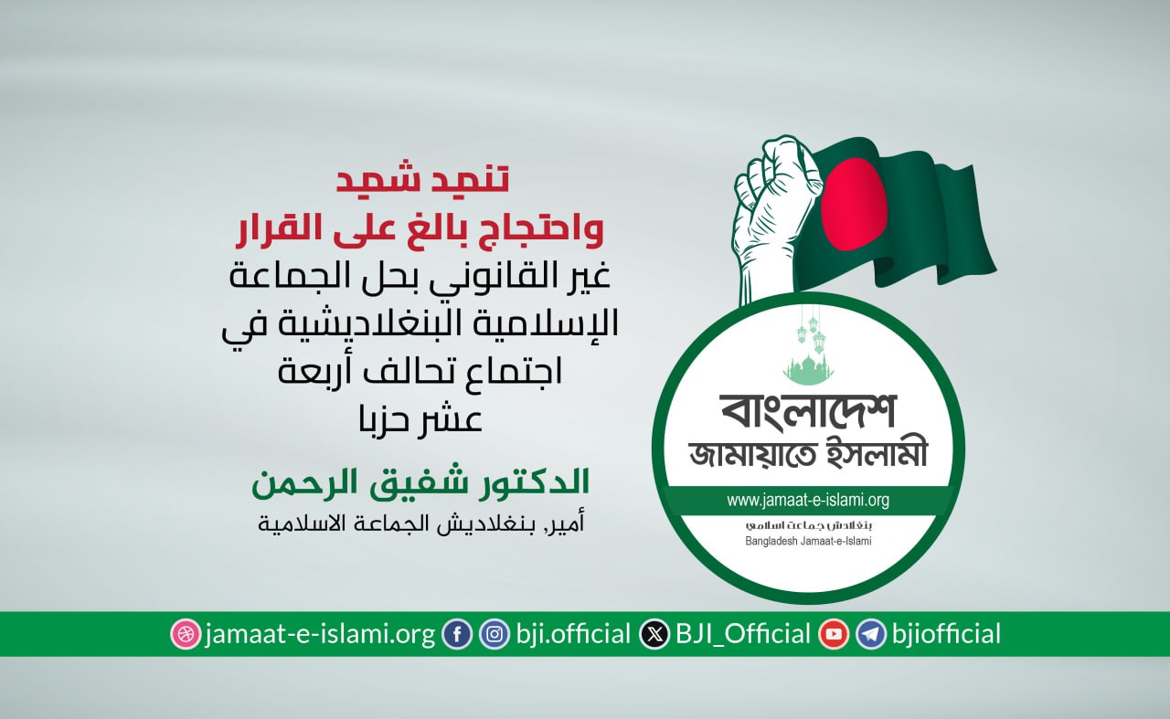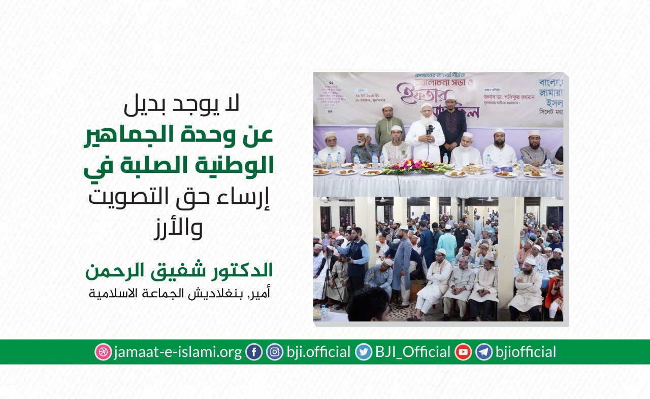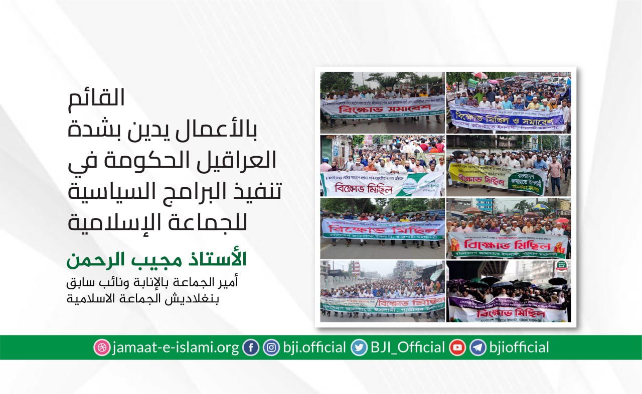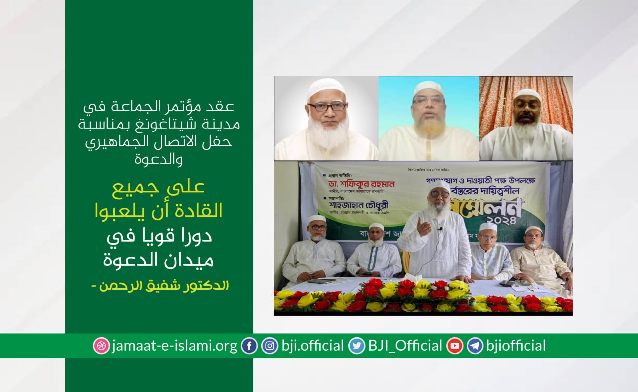 أكد أمير الجماعة الإسلامية في بنغلاديش الدكتور شفيق الرحمن أن الجماعة ماضية في نضالها وجهادها الدؤوب لإقامة مجتمع يقوم على دعائم العدل والإنصاف، مشددا على أن مسيرة الكفاح ستظل متواصلة حتى تشرق شمس النصر الموعود وتتحقق الغاية المنشودة