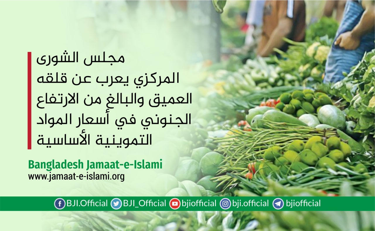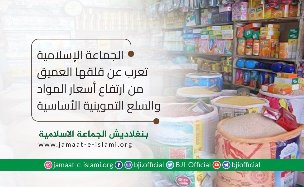 أصدر أمير الجماعة الإسلامية الشيخ الدكتور شفيق الرحمن اليوم السبت الموافق لـ 21 مارس 2020 بيانا أعرب فيه عن قلقه البالغ والعميق من الارتفاع الجنوني في أسعار السلع والمواد التموينية الأساسية في ظل تداعيات تفشي فيروس كورونا المستجد في البلاد،مضيفا بأنه بينما نحن نعاني من شح ونقص حاد في الأجهزة الطبية الخاصة بالكشف عن مرضى كورونا نتفاجأ بين ليلة وضحاها بنقص حاد في السلع والمواد التموينية الأساسية في الأسواق وهو ما أدى إلى انتشار الرعب والهلع بين المواطنين الذين هرعوا إلى الأسواق لشراء حاجياتهم الأساسية لكنهم تفاجأوا بارتفاع حاد في أسعار المواد والسلع الأساسية التموينية وهو ما أدى إلى أزمة ...