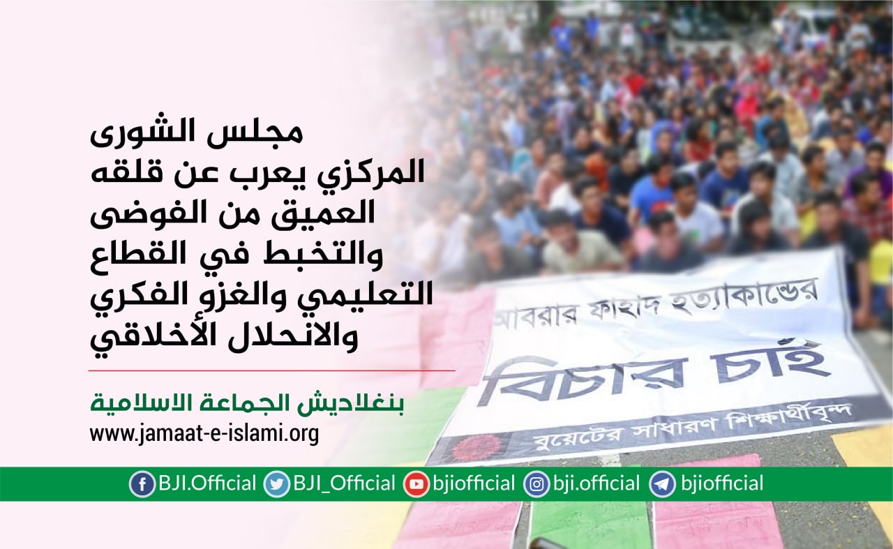 جاء ذلك في كلمة ألقاها أمير الجماعة الإسلامية في ورشة العمل الافتراضية لأعضاء لجنة العمل المركزية لمحافظات كوشتيا ومهربور وجينايده وشوادنغا والتي استمرت ليومين بإدارة عضو المجلس التنفيذي المركزي للجماعة الإسلامية ومنسق عام محافظة جسور وكوشتيا السيد مبارك حسين،وفي بداية كلمته شكر أمير الجماعة الإسلامية الله سبحانه وتعالى بأن وفقنا في الانضمام لمنظمة منضبطة تنظيميا مثل الجماعة الإسلامية ،واوصي ...