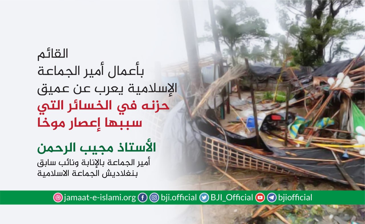 أصدر أمير الجماعة الإسلامية الشيخ الدكتور شفيق الرحمن اليوم الثلاثاء الموافق لـ19 مايو 2020 بيانا دعا فيه الشعب إلى التضرع إلىالله عزوجل بالدعاء ليحمينا من الآثار المدمرة لإعصار مفان الذي سيجتاح البلاد وحث الإدارات الحكومية المعنية وأصحاب الأيادي البيضاء ومنسوبي ونشطاء الجماعة الإسلامية على أن يكونوا في الجاهزية القصوى لمواجهة أي موقف طارئ قد تحدث لا قدر الله ،مضيفا بأنه وحسب توقعات إدارة الأرصاد الجوية فإن إعصار مفان من المتوقع أن تتحول إلى عاصفة مدارية شديدة القوة ومن ...