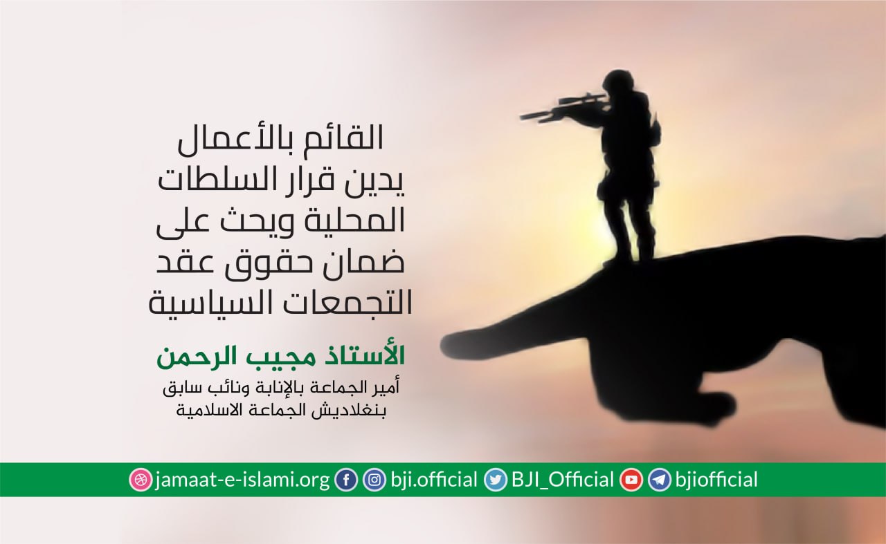 قال أمير الجماعة الإسلامية الشيخ الدكتور شفيق الرحمن إن جائحة كورونا التي اجتاحت العالم بأسره حصدت حتى الآن أرواح أكثر من أربعة ملايين شخص في جميع أنحاء العالم،والناس اليوم لا حول لهم ولا قوة أمام هذا الاجتياح، ورغم أننا نمر في جائحة إلا أن القمع والتعذيب وعمليات السلب والنهب لم تتوقف ،والحكومة أيضا لم تقف إلى جانب الفقراء والمساكين أصحاب ذوي الدخل المحدود ،وعلى الجانب الآخر،نرى أن الحكومة لم تكف عن رفع دعاوي قضائية ملفقة ومفبركة ضد النشطاء السياسيين المعارضين ،مشيرا إلى أنه لا يمكن ترسيخ حقوق الانسان بدون إقامة مجتمع قائم على العدل والانصاف وقد بعث الله ...