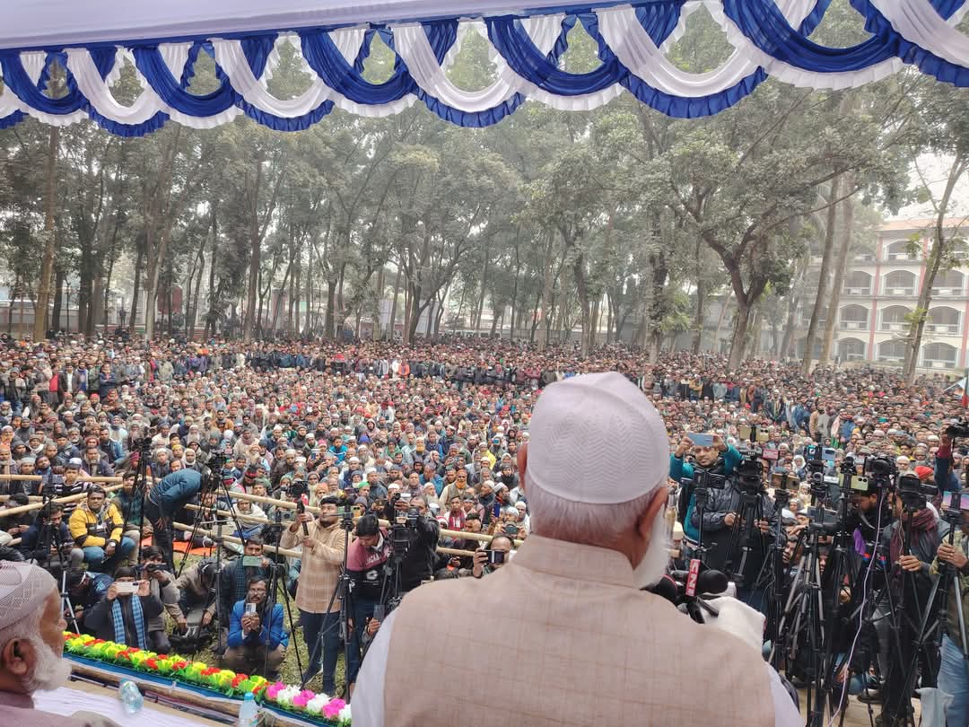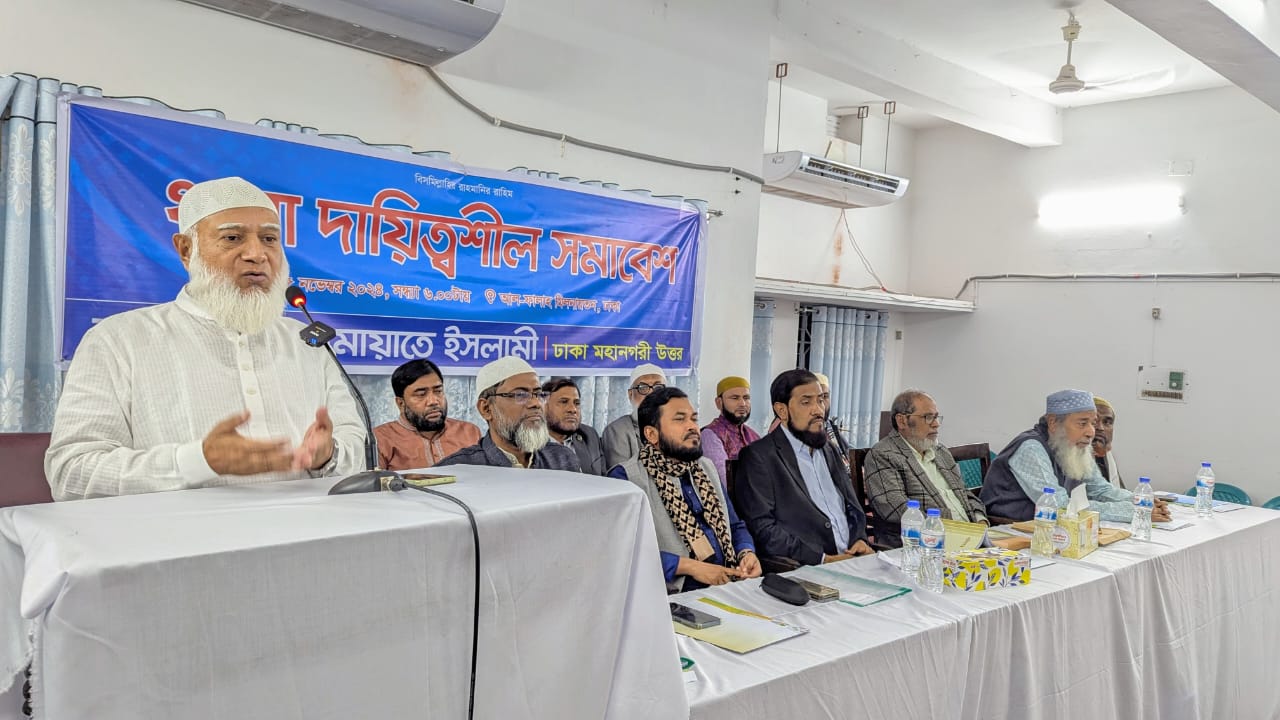 جاءت كلمته صباح اليوم الخميس ١٦ أكتوبر، في تمام الساعة العاشرة والنصف، بقاعة الشرطة للمؤتمرات في ميربور، خلال التجمع النسائي الكبير الذي نظمته الجماعة الإسلامية في مدينة دكا الشمالية، لمنطقة ميربور-كافرول (الدائرة الانتخابية دكا-١٥)