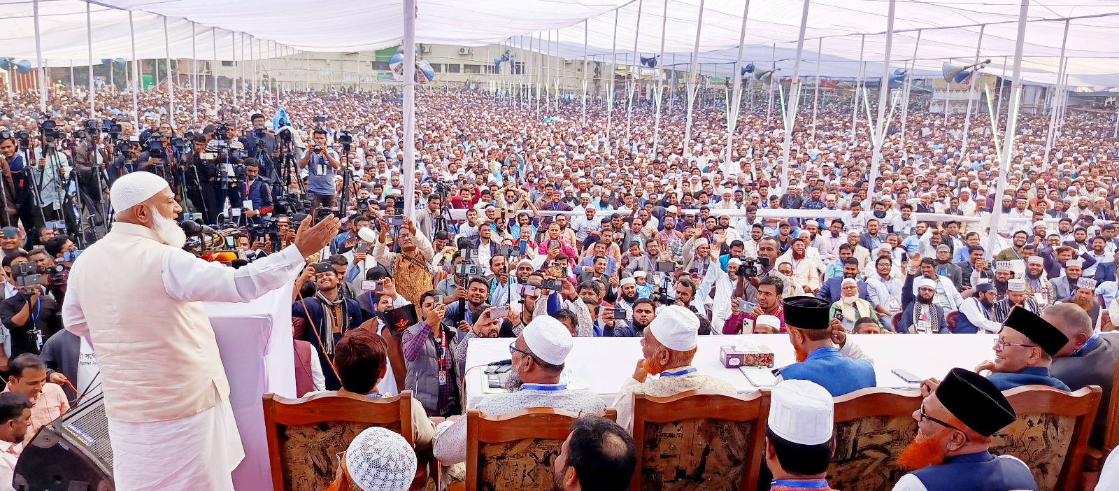 جاءت كلماته هذه في تمام الساعة العاشرة والنصف من صباح اليوم، وهو يخاطب جموع المواطنين ضيفا رئيسا في المخيم الطبي المجاني الذي أقيم بجهود الجماعة في منطقة كافرول – الجنوب، بالدائرة الانتخابية "داكا–15"، في فرع (02) لمدرسة ومنتزه "مونيبور" بإبراهيمبور