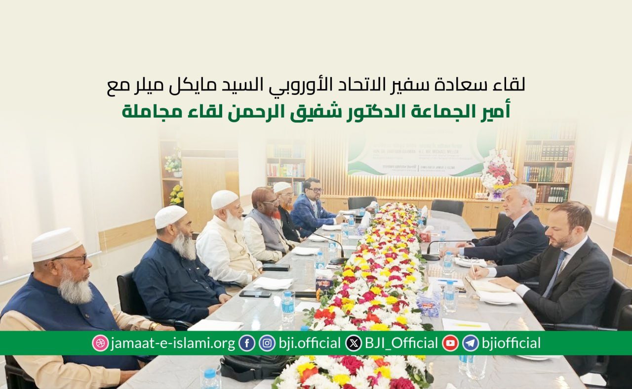 في صباح الثلاثاء، الرابع والعشرين من يونيو، عند الساعة الحادية عشرة والنصف، التقى أمير الجماعة الإسلامية في بنغلاديش، الدكتور شفيق الرحمن، بسفير الاتحاد الأوروبي الموقر لدى دكا، السيد مايكل ميلر، في مكتبه بمنطقة باسوندهارا