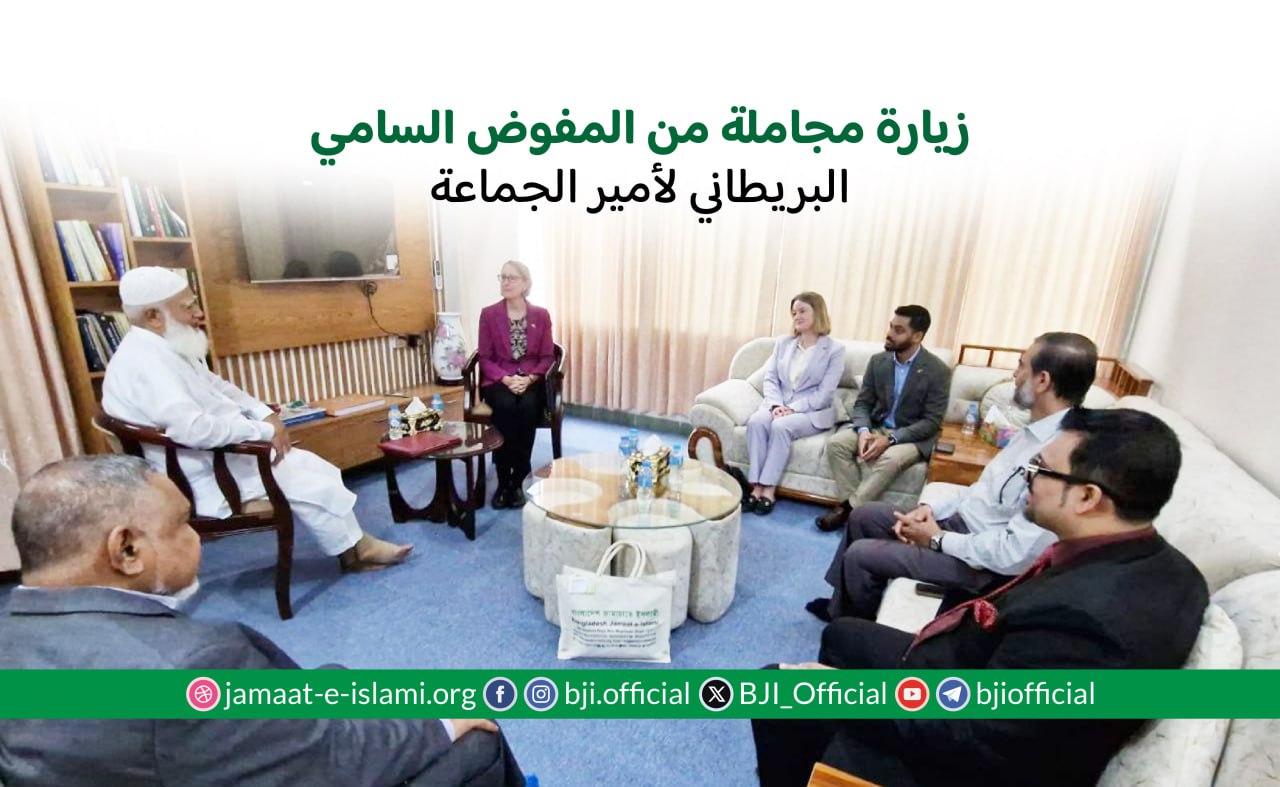 في صبيحة يوم الأربعاء العاشر من سبتمبر، وفي تمام الساعة الحادية عشرة، شرفت سعادة المفوضة السامية البريطانية لدى بنغلاديش، السيدة سارة كوك، مكتب سماحة أمير الجماعة الإسلامية في بنغلاديش، الدكتور شفيق الرحمن، الكائن في باشوندرا، بزيارة ودية ومقابلة رفيعة المستوى. وقد استهلت اللقاء بالسؤال عن صحته الغالية، متمنية له تمام العافية ودوام السلامة. وقد رافقتها في هذه الزيارة الآنسة كيت وورد، السكرتيرة الثانية بالمفوضية. وجرت المحادثة في أجواء مفعمة بالمودة والاحترام المتبادل