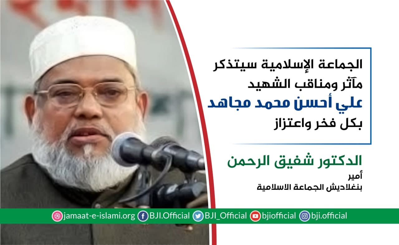 أصدر أمير الجماعة الإسلامية الشيخ الدكتور شفيق الرحمن اليوم السبت الموافق لـ21 نوفمبر 2020 بيانا استذكر فيه مناقب ومآثر الأمين العام للجماعة الإسلامية الشهيد علي أحسن محمد مجاهد الذي قتلته الحكومة قضائيا في الحادي والعشرين من نوفمبر 2015 ،مضيفا بأن الشهيد علي أحسن محمد مجاهد كان بريء تماما من جميع التهم الموجهة إليه.