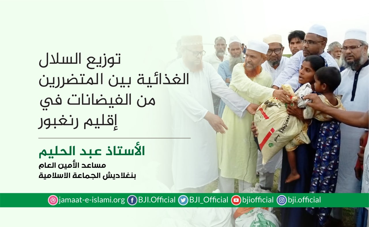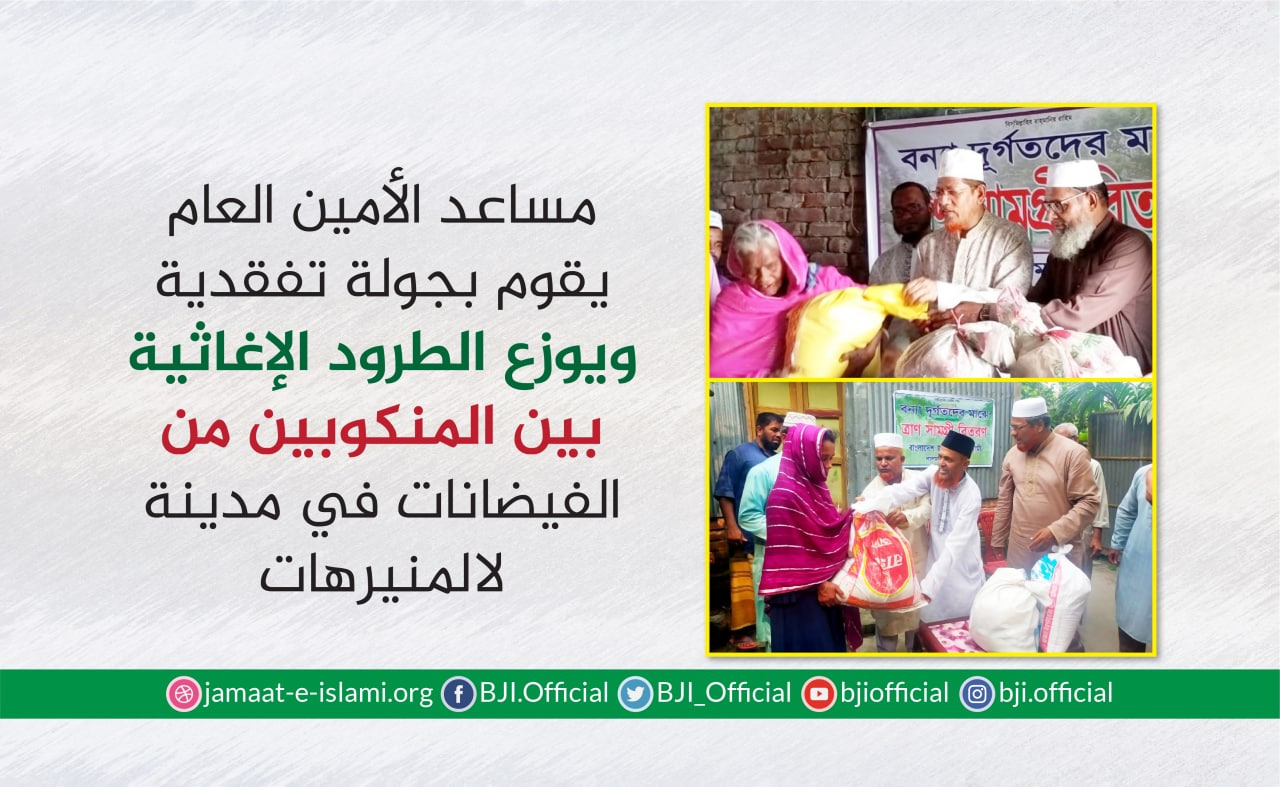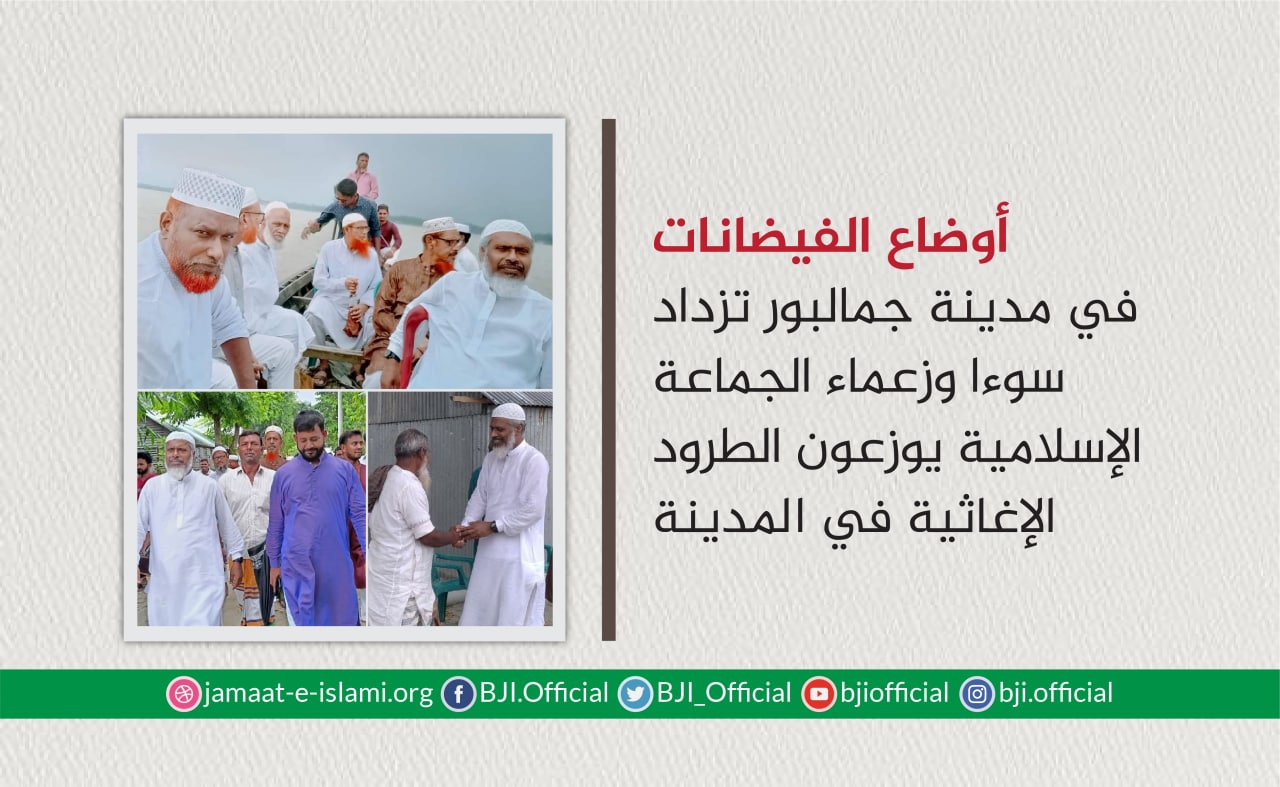 أوضاع الفيضانات في مدينة جمالبور تزداد سوءا وزعماء الجماعة الإسلامية يوزعون الطرود الإغاثية في المدينة