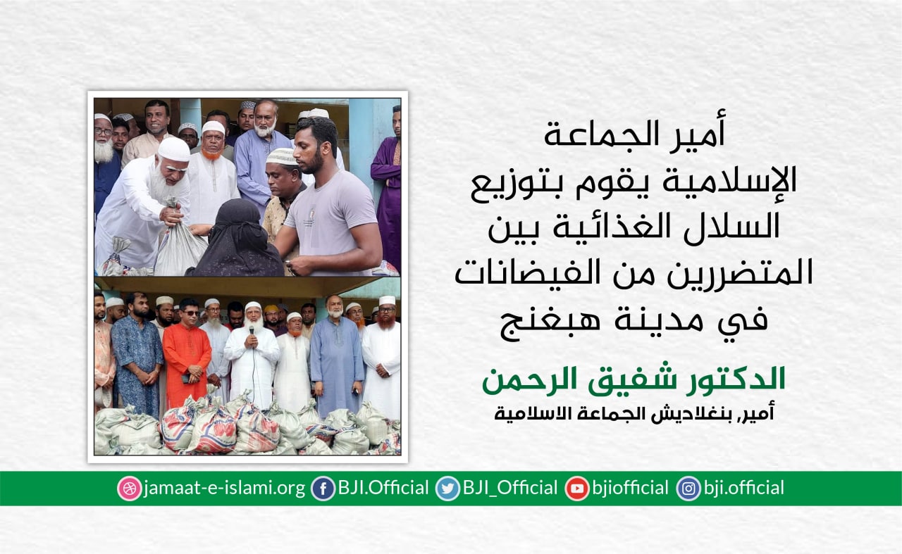 في اليوم الثالث للعيد أمير الجماعة الإسلامية يواصل توزيع هدايا العيد بين المتضررين من الفيضانات في مدينة سلهت
