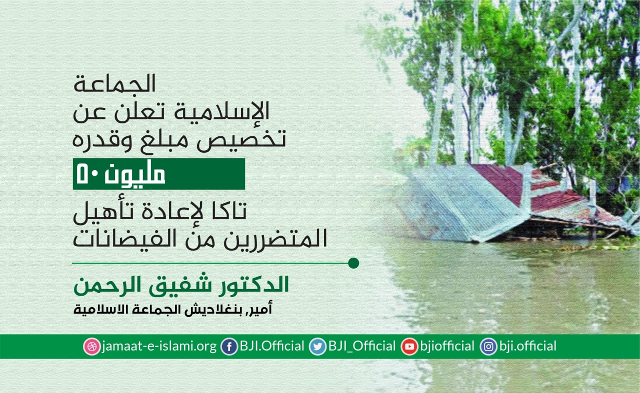 الجماعة الإسلامية تعلن عن تخصيص مبلغ وقدره 50 مليون تاكا لإعادة تأهيل المتضررين من الفيضانات