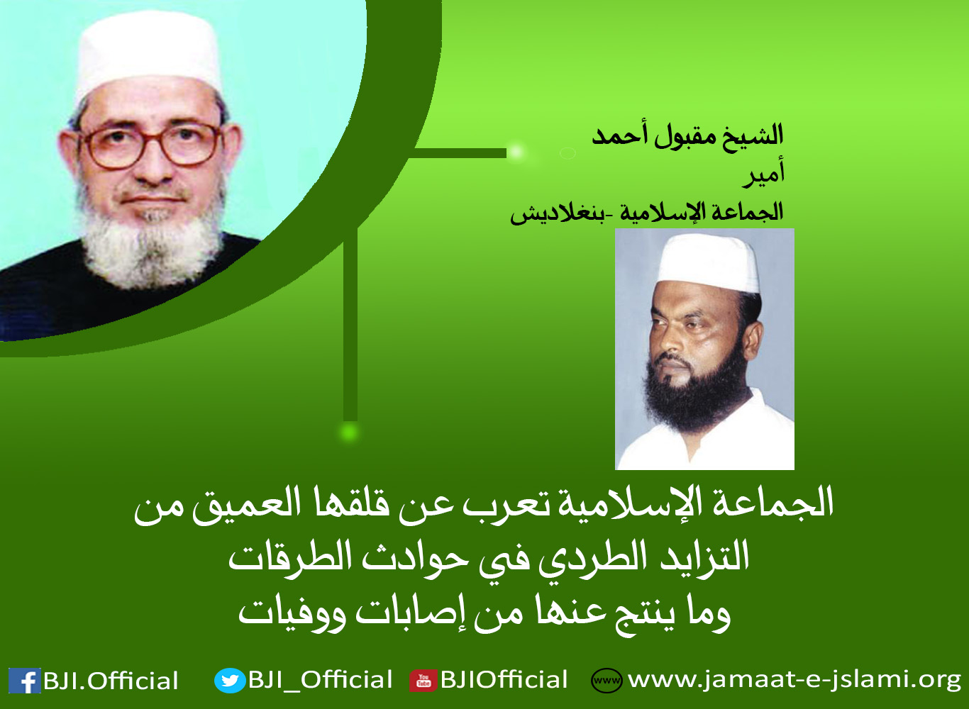 أمير الجماعة الإسلامية يدعو الشعب ومنسوبي ونشطاء الجماعة للدعاء لأمير الجماعة لمدينة\"مومن شاهي \"الأستاذ جشيم الدين