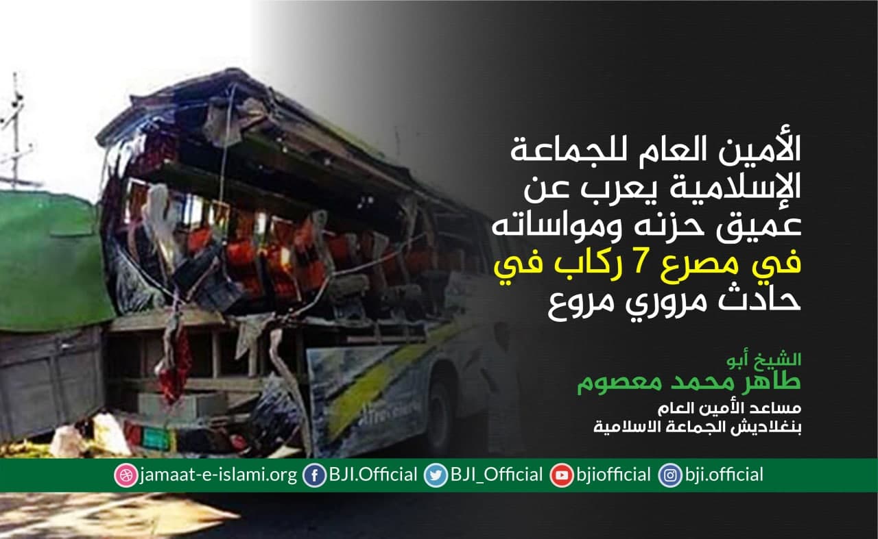 الأمين العام للجماعة الإسلامية يعرب عن عميق حزنه ومواساته في مصرع 7 ركاب في حادث مروري مروع