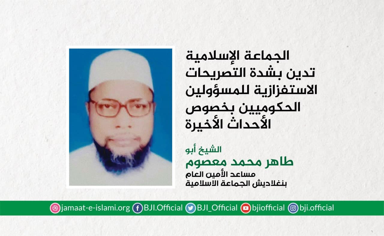 الجماعة الإسلامية تدين بشدة التصريحات الاستفزازية للمسؤولين الحكوميين بخصوص الأحداث الأخيرة