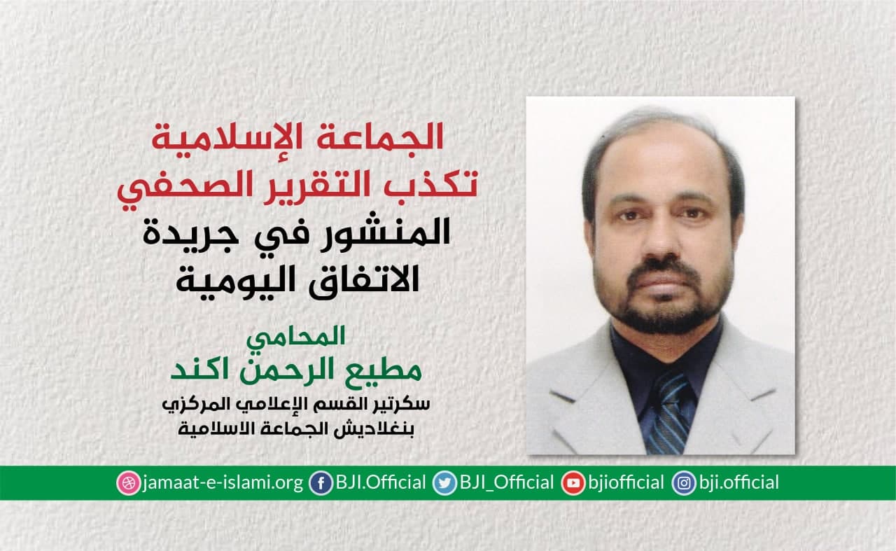 الجماعة الإسلامية تكذب التقرير الصحفي المنشور في جريدة الاتفاق اليومية