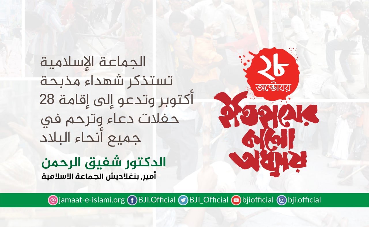 الجماعة الإسلامية تستذكر شهداء مذبحة 28 أكتوبر وتدعو إلى إقامة حفلات دعاء وترحم في جميع أنحاء البلاد