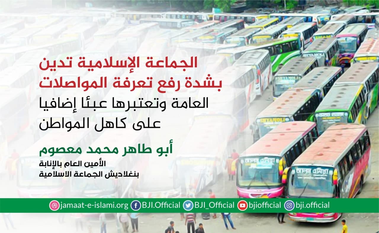 الجماعة الإسلامية تدين بشدة رفع تعرفة المواصلات العامة وتعتبرها عبئا إضافيا على كاهل المواطن