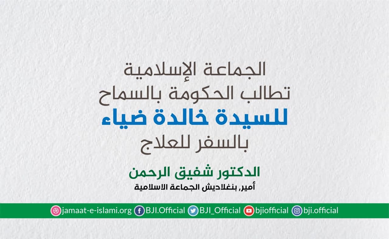 الجماعة الإسلامية تطالب الحكومة بالسماح للسيدة خالدة ضياء بالسفر للعلاج
