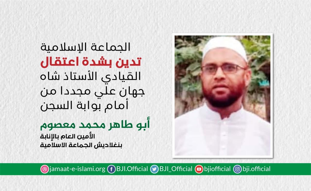 الجماعة الإسلامية تدين بشدة اعتقال القيادي الأستاذ شاه جهان علي مجددا من أمام بوابة السجن