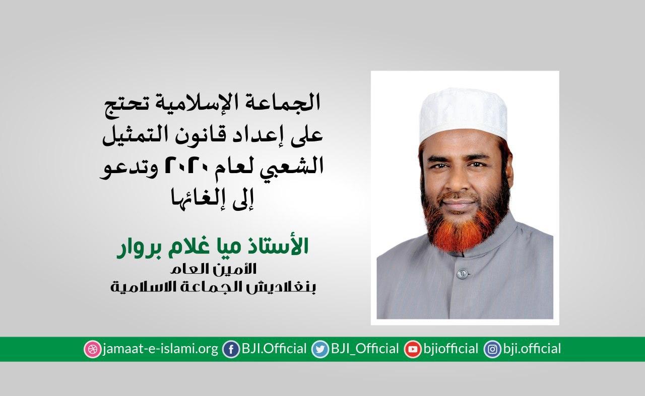 الجماعة الإسلامية تحتج على إعداد قانون التمثيل الشعبي لعام 2020 وتدعو إلى إلغائها