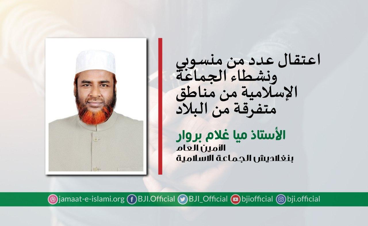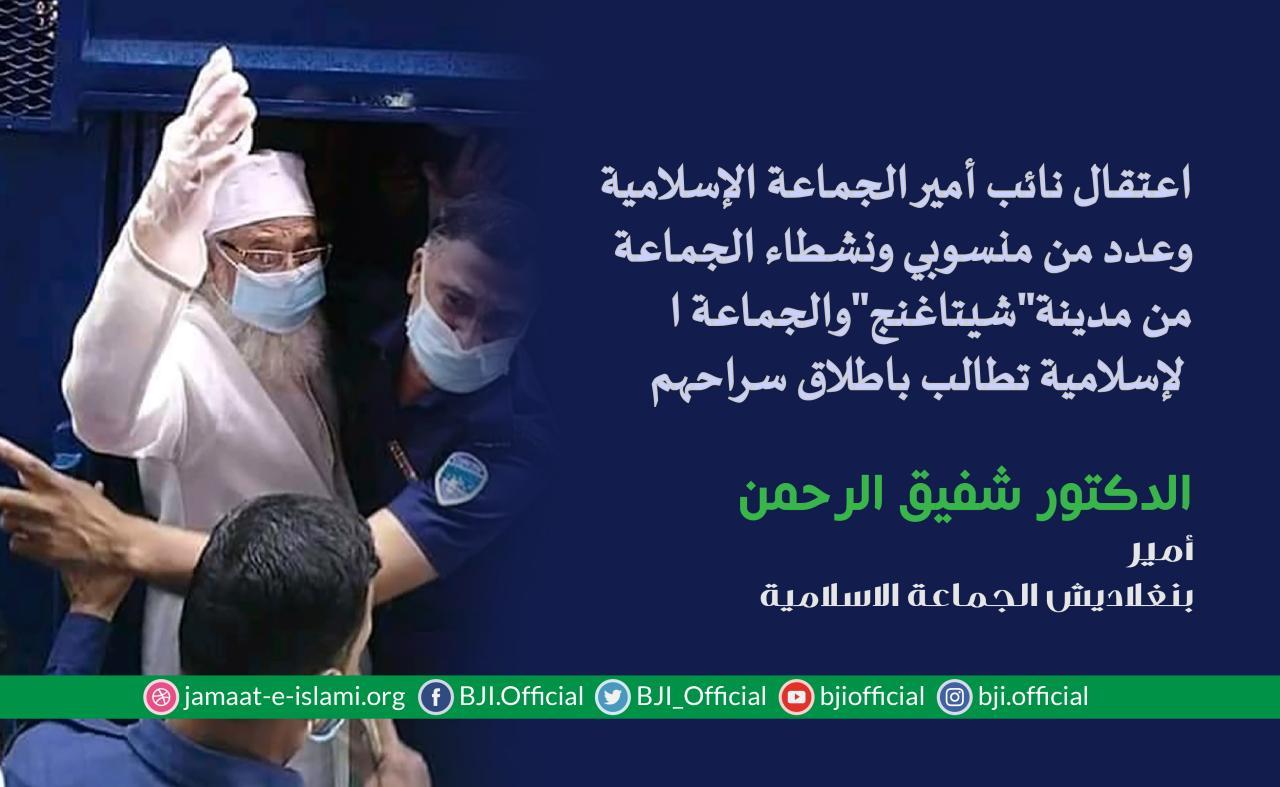 اعتقال نائب أمير الجماعة الإسلامية وعدد من منسوبي ونشطاء الجماعة من مدينة"شيتاغنج"والجماعة الإسلامية تطالب باطلاق سراحهم