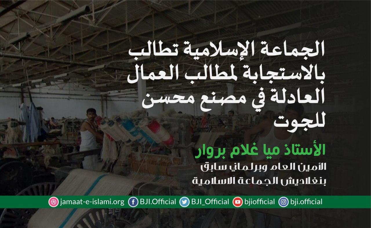 الجماعة الإسلامية تطالب بالاستجابة لمطالب العمال العادلة في مصنع محسن للجوت