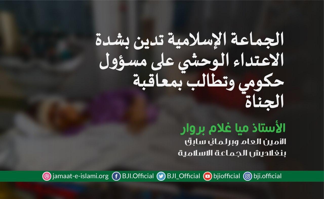 الجماعة الإسلامية تدين بشدة الاعتداء الوحشي على مسؤول حكومي وتطالب بمعاقبة الجناة