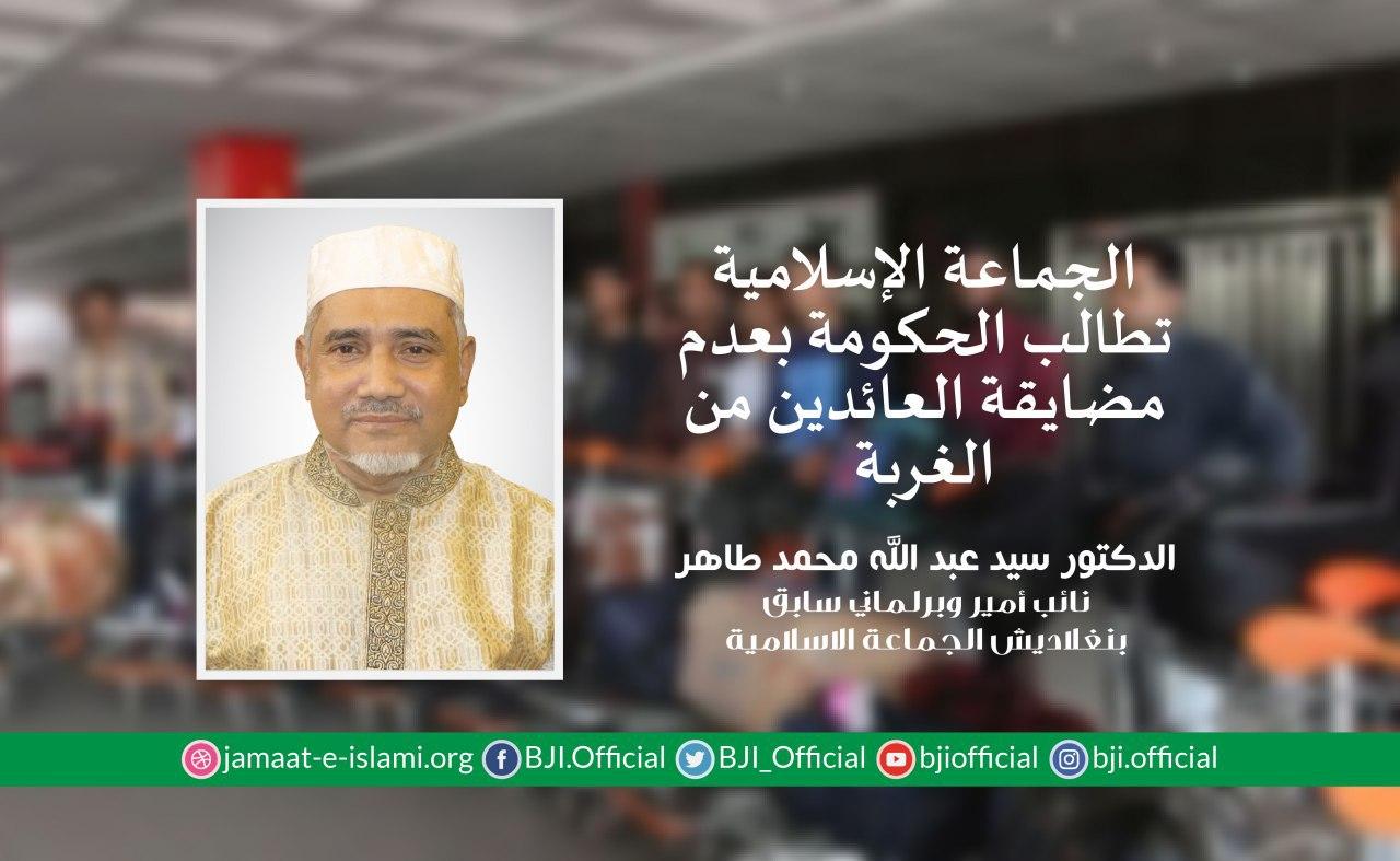 الجماعة الإسلامية تطالب الحكومة بإيجاد حل سريع لمشكلة المغتربين العالقين في داكا والمتوجهين للمملكة العربية السعودية