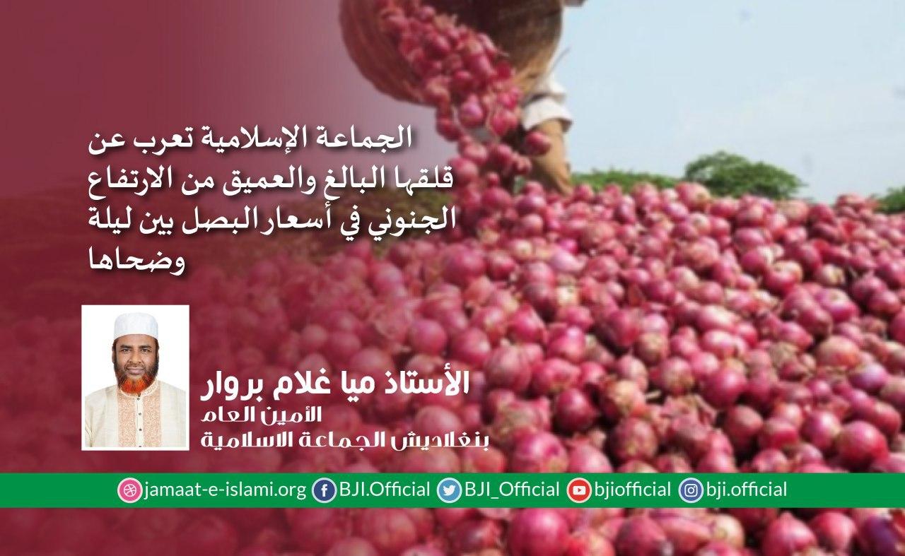 الجماعة الإسلامية تعرب عن قلقها البالغ والعميق من الارتفاع الجنوني في أسعار البصل بين ليلة وضحاها