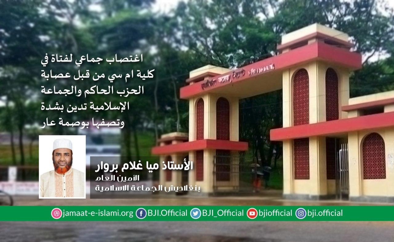 اغتصاب جماعي لفتاة في كلية ام سي من قبل عصابة الحزب الحاكم والجماعة الإسلامية تدين بشدة وتصفها بوصمة عار