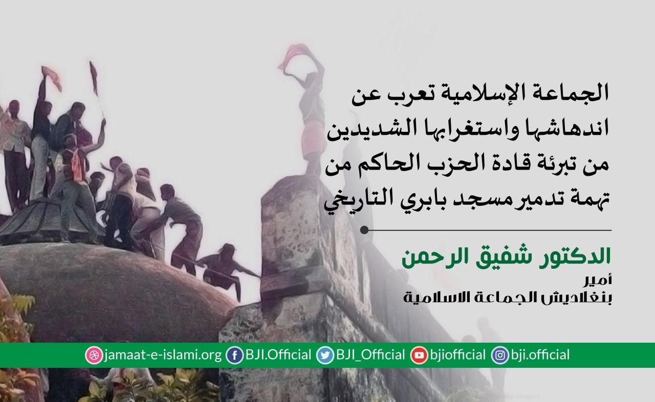 الجماعة الإسلامية تعرب عن اندهاشها واستغرابها الشديدين من تبرئة قادة الحزب الحاكم من تهمة تدمير مسجد بابري التاريخي