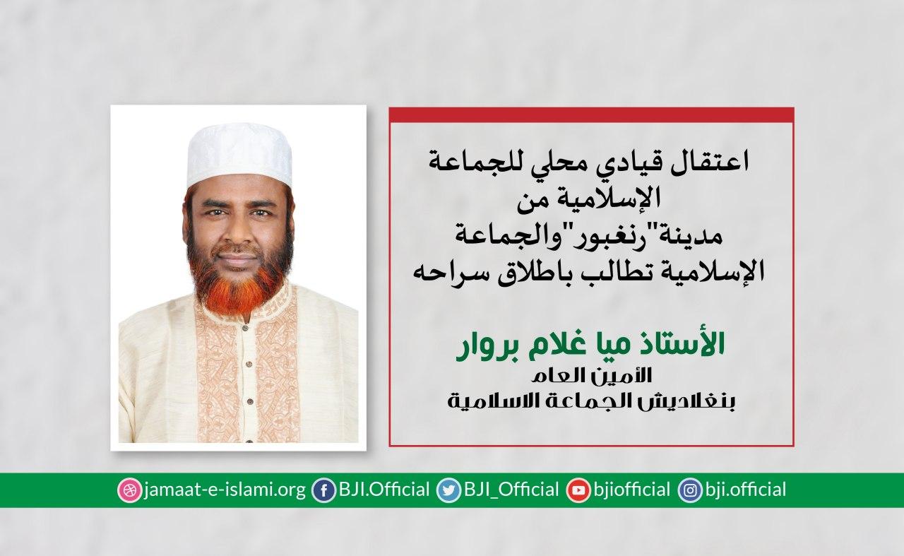 اعتقال قيادي محلي للجماعة الإسلامية من مدينة"رنغبور"والجماعة الإسلامية تطالب باطلاق سراحه