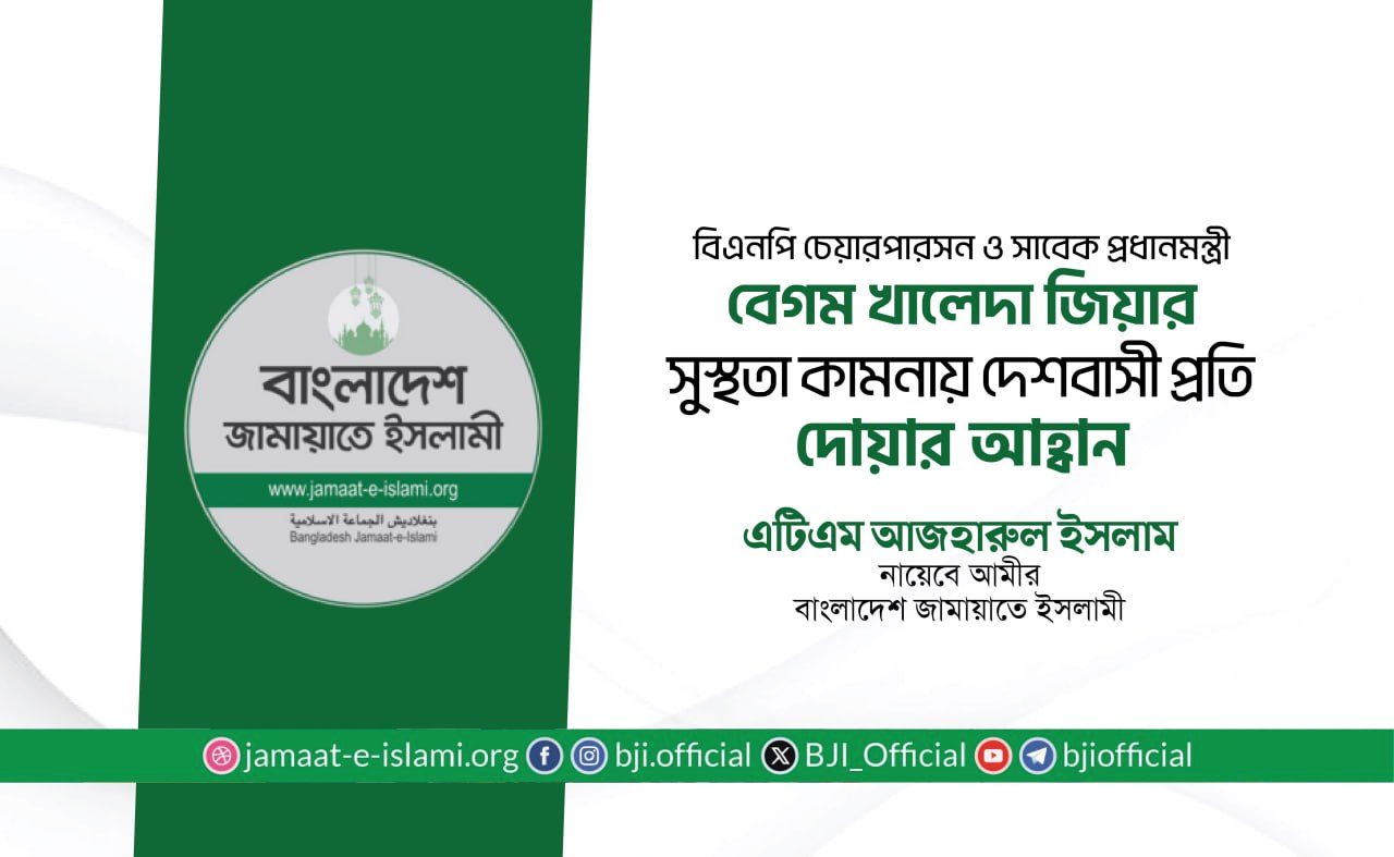 নায়েবে আমীর বলেন, জুলাই বিপ্লবের মাধ্যমে বেগম খালেদা জিয়ার মুক্তি পাওয়ায় আমি এবং দেশের সকল মজলুম মানুষ মহান আল্লাহর দরবারে শোকরিয়া আদায় করেছি। ফ্যাসিবাদের পতনের পর গণতান্ত্রিক উত্তরণ ও ন্যায়ভিত্তিক রাষ্ট্র গঠনের এই সন্ধিক্ষণে দেশবাসী প্রত্যাশা করে-তিনি জাতির পথপ্রদর্শকের ভূমিকায় অবতীর্ণ হবেন। এ সংকটময় মুহূর্তে আমরা সর্বশক্তিমান আল্লাহর কাছে তাঁর দ্রুত রোগমুক্তি ও পূর্ণ সুস্থতা কামনা করি। আল্লাহ তাঁকে ও তাঁর পরিবারকে হেফাজত করুন।