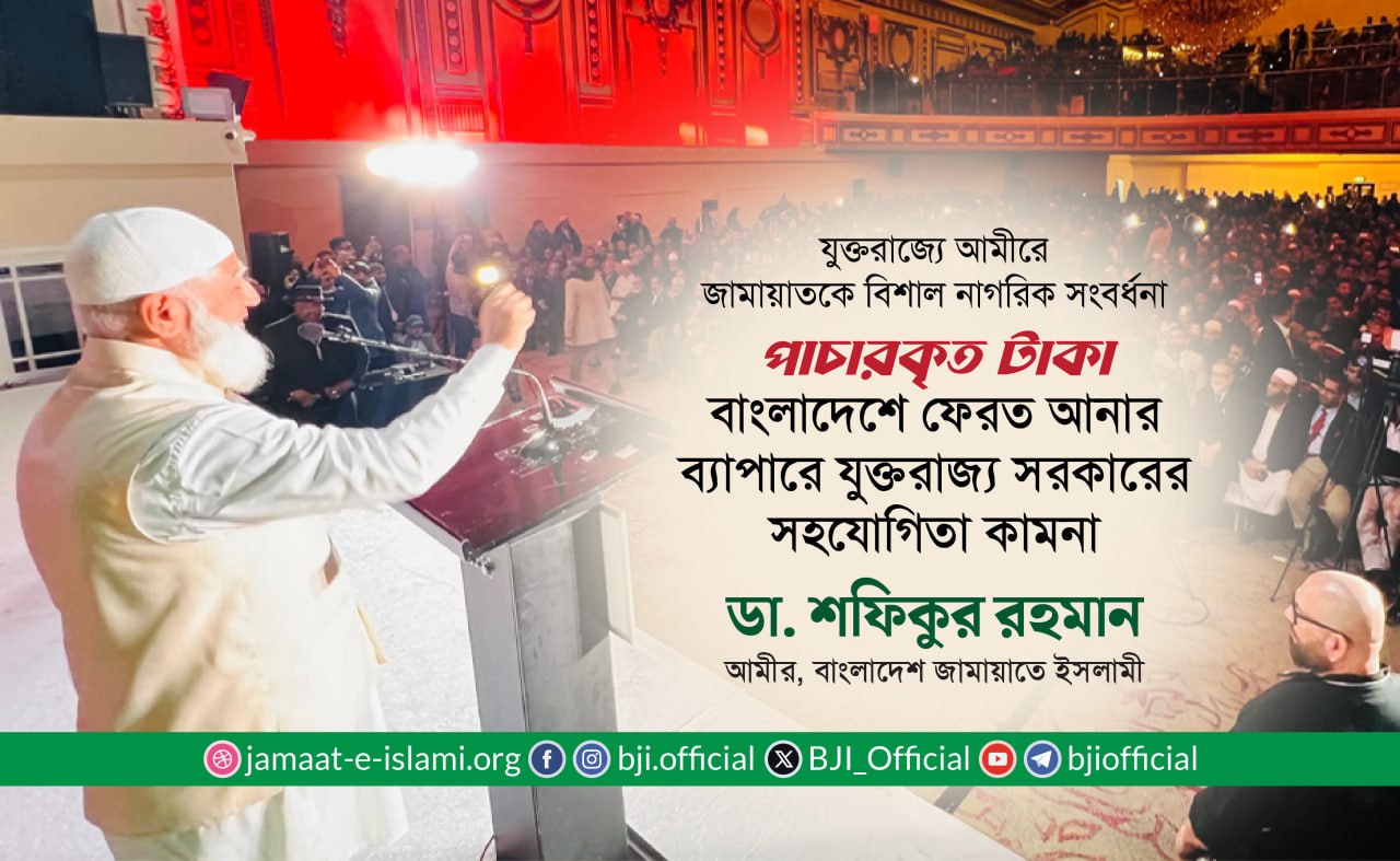 যুক্তরাজ্যে সফররত বাংলাদেশ জামায়াতে ইসলামীর আমীর ডা. শফিকুর রহমান যুক্তরাজ্য সরকারের সহযোগিতা কামনা করে বলেন, বাংলাদেশ থেকে যুক্তরাজ্যে পাচারকৃত টাকা ...