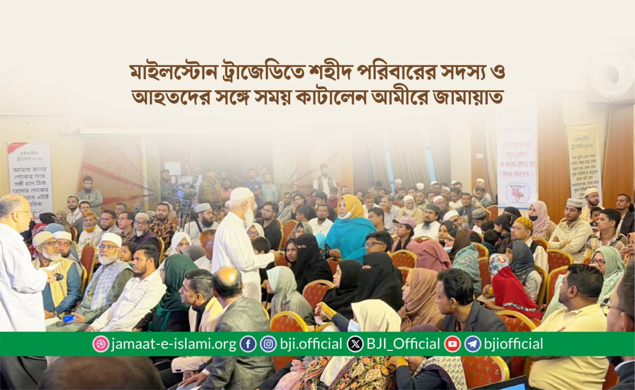 ২৯ আগস্ট বৃহস্পতিবার নারায়ণগঞ্জ মহানগরী ও জেলা জামায়াতের উদ্যোগে বৈষম্যবিরোধী ছাত্র-জনতার আন্দোলনে শহীদ পরিবারের সদস্যদের সাথে আমীরে জামায়াত ডা. শফিকুর ...
