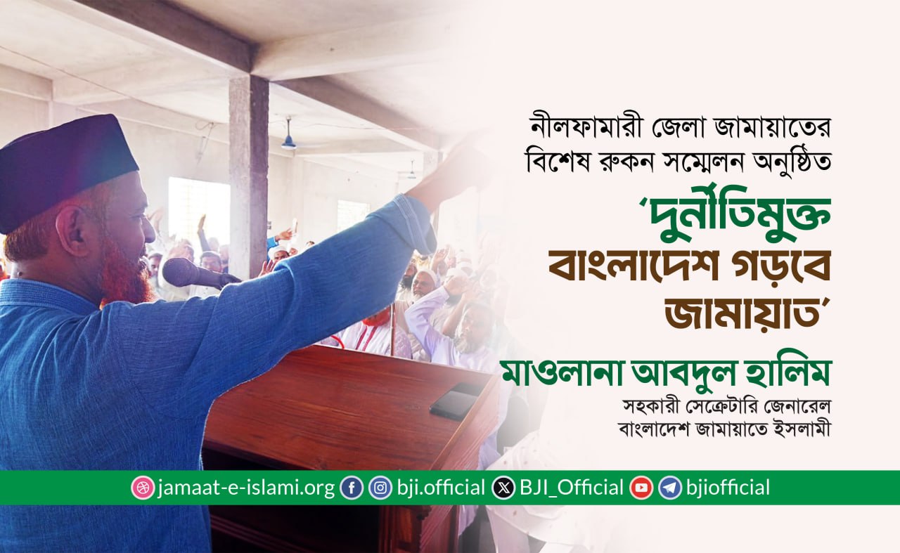২৪ ফেব্রুয়ারি শনিবার বাংলাদেশ জামায়াতে ইসলামী নীলফামারী জেলার বার্ষিক রুকন সম্মেলন ভার্চুয়ালি অনুষ্ঠিত হয়। জেলা জামায়াতের আমীর জনাব মোহাম্মদ আব্দুর ...