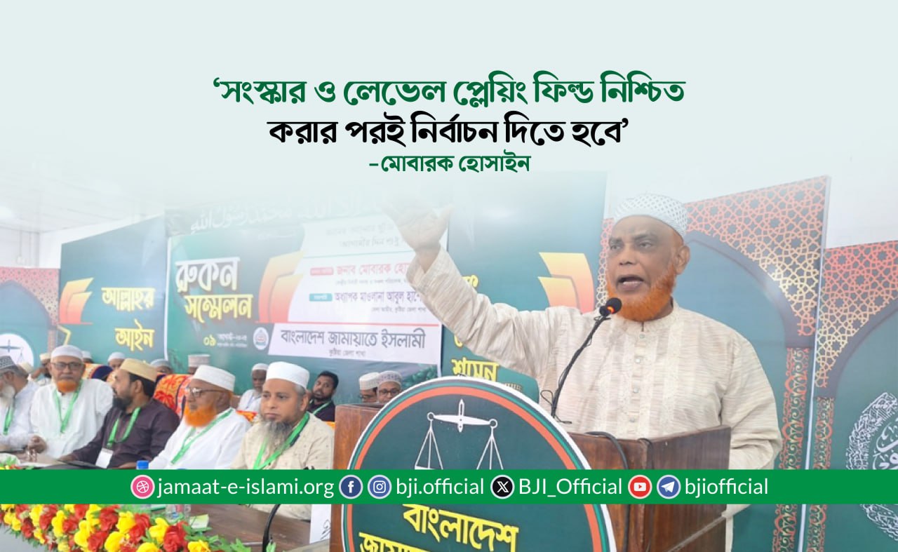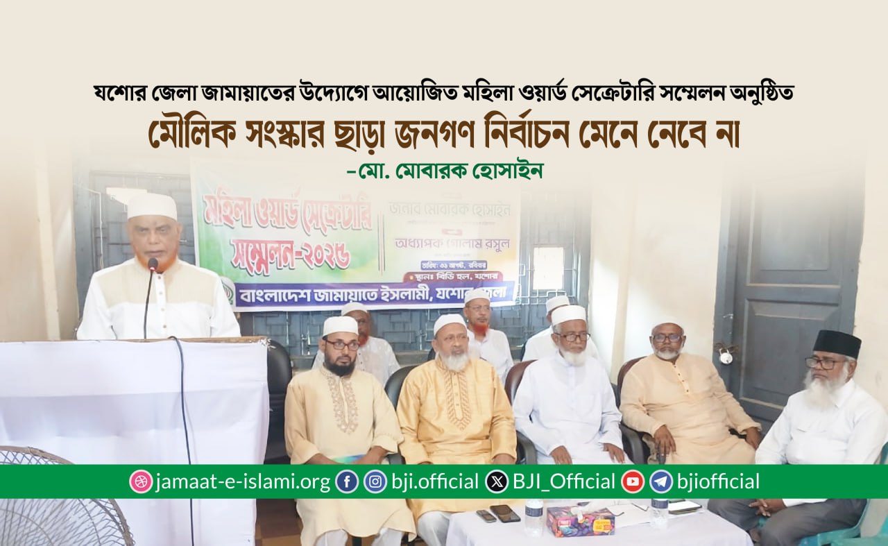 বাংলাদেশ জামায়াতে ইসলামীর কেন্দ্রীয় নির্বাহী পরিষদ সদস্য ও যশোর-কুষ্টিয়া অঞ্চল পরিচালক মোবারক হোসাইন বলেছেন, “মৌলিক সংস্কার ছাড়া দেশের জনগণ নির্বাচন ...