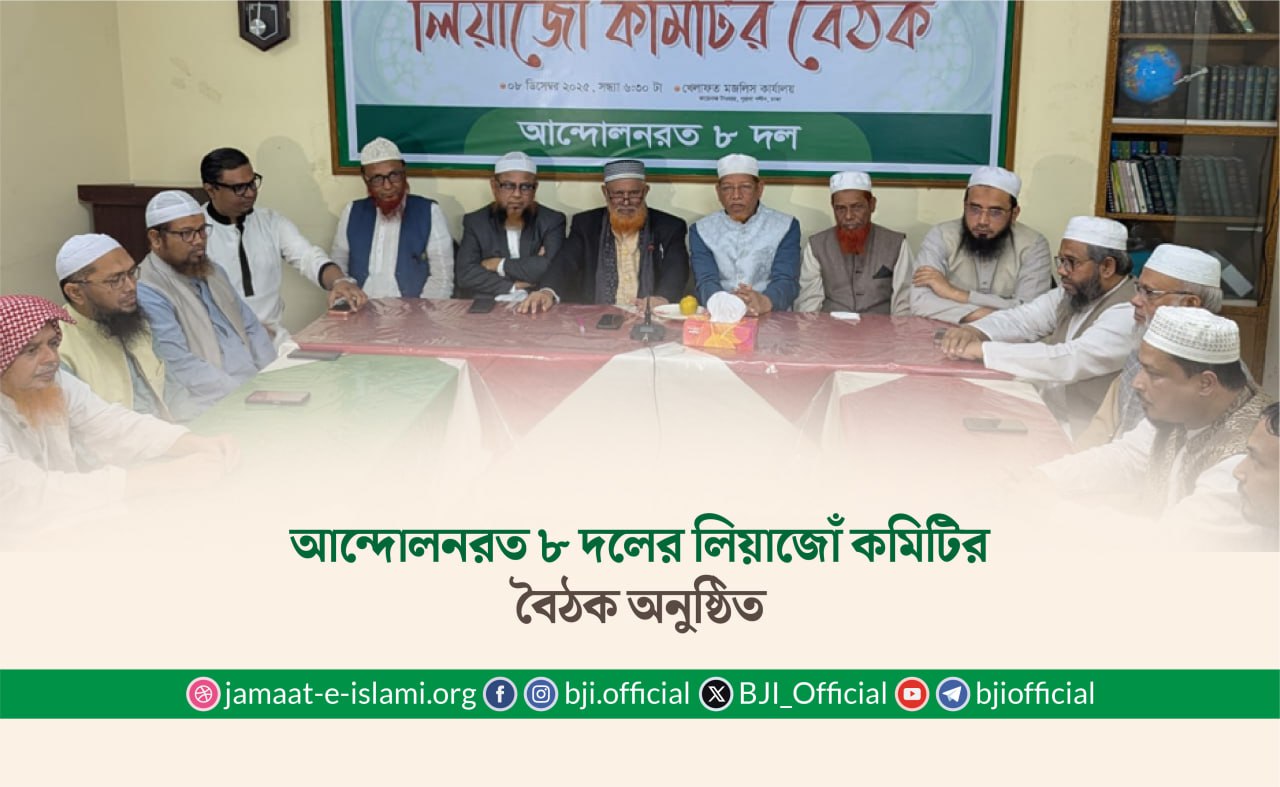নড়াইল জেলা জামায়াতে ইসলামীর ৯ জন নেতাকর্মীকে অন্যায়ভাবে গ্রেফতারের তীব্র নিন্দা ও প্রতিবাদ জানিয়ে বাংলাদেশ জামায়াতে ইসলামীর ভারপ্রাপ্ত সেক্রেটারি জেনারেল ...