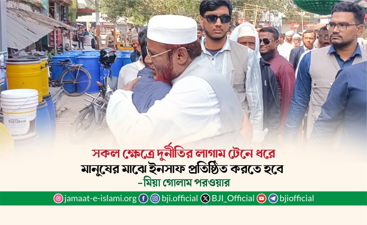 বাংলাদেশ জামায়াতে ইসলামী সৎ, ন্যায়পরায়ণ ও নিষ্ঠাবান নেতৃত্বের মাধ্যমে দেশবাসীকে ইনসাফের বাংলাদেশ উপহার দিবে ইনশাল্লাহ। দেশগঠনে জামায়াত কর্মীদেরকে ভোগ নয়, ...