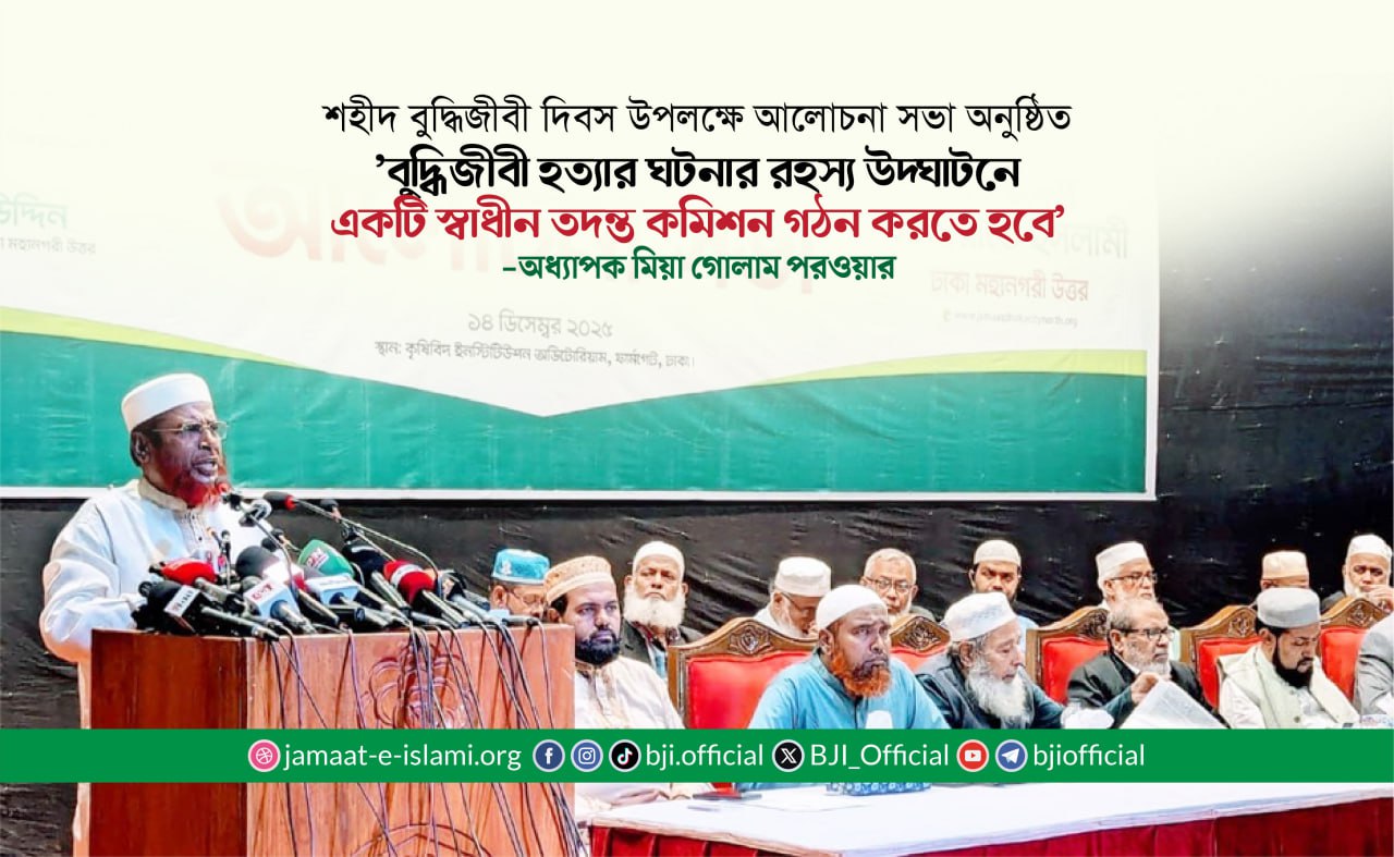 চুয়াডাঙ্গা জেলা জামায়াতের আমীর রুহুল আমিনসহ ৬ জন নেতাকর্মীকে অন্যায়ভাবে গ্রেফতারের তীব্র নিন্দা ও প্রতিবাদ জানিয়ে বাংলাদেশ জামায়াতে ইসলামীর ভারপ্রাপ্ত ...