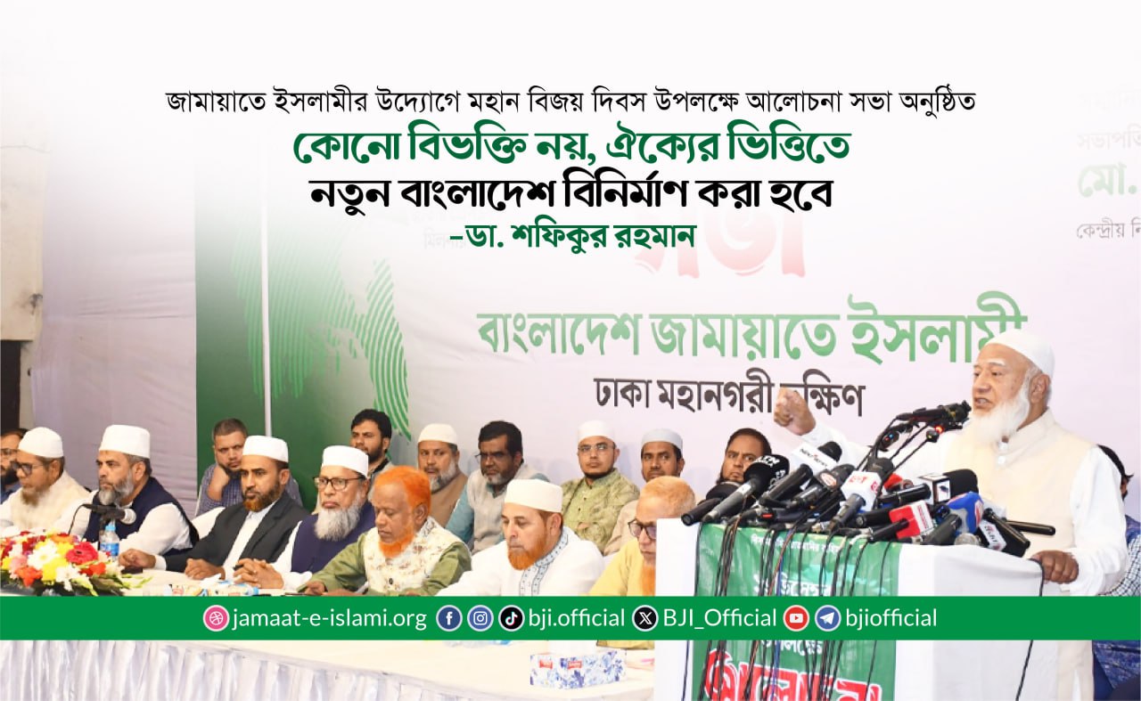 বাংলাদেশ জামায়াতে ইসলামীর আমীর ডা. শফিকুর রহমান বলেছেন, ‘‘পুরোনো ব্যবস্থার রাজনীতি ছুঁড়ে ফেলে দিয়ে নতুন ব্যবস্থার রাজনীতিতে আগামীর বাংলাদেশ পরিচালিত ...