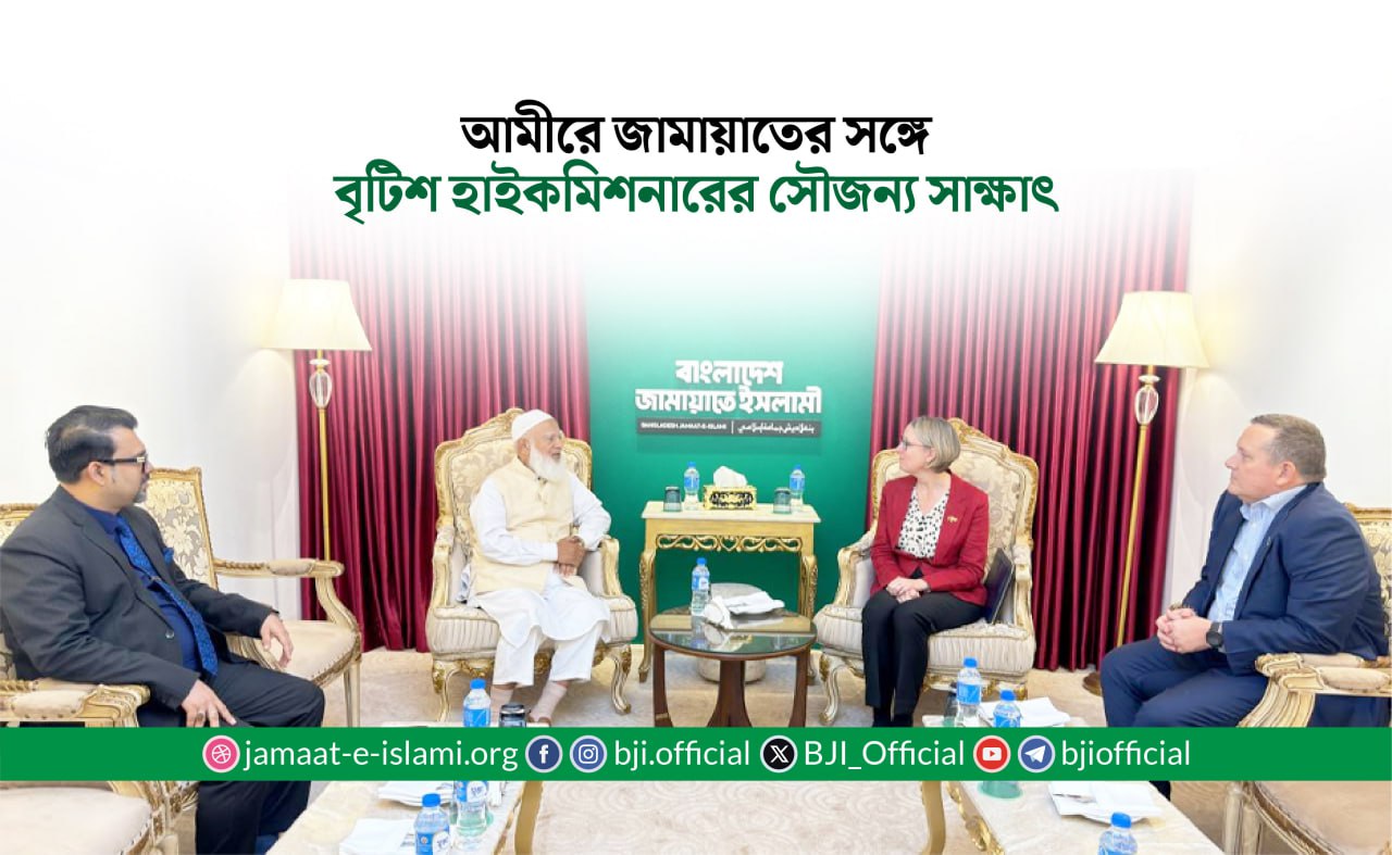 ১০ সেপ্টেম্বর (বুধবার) বেলা ১১টায় বাংলাদেশ জামায়াতে ইসলামীর আমীর ডা. শফিকুর রহমানের সঙ্গে বসুন্ধরায় তার কার্যালয়ে বাংলাদেশে নিযুক্ত মান্যবর ব্রিটিশ ...